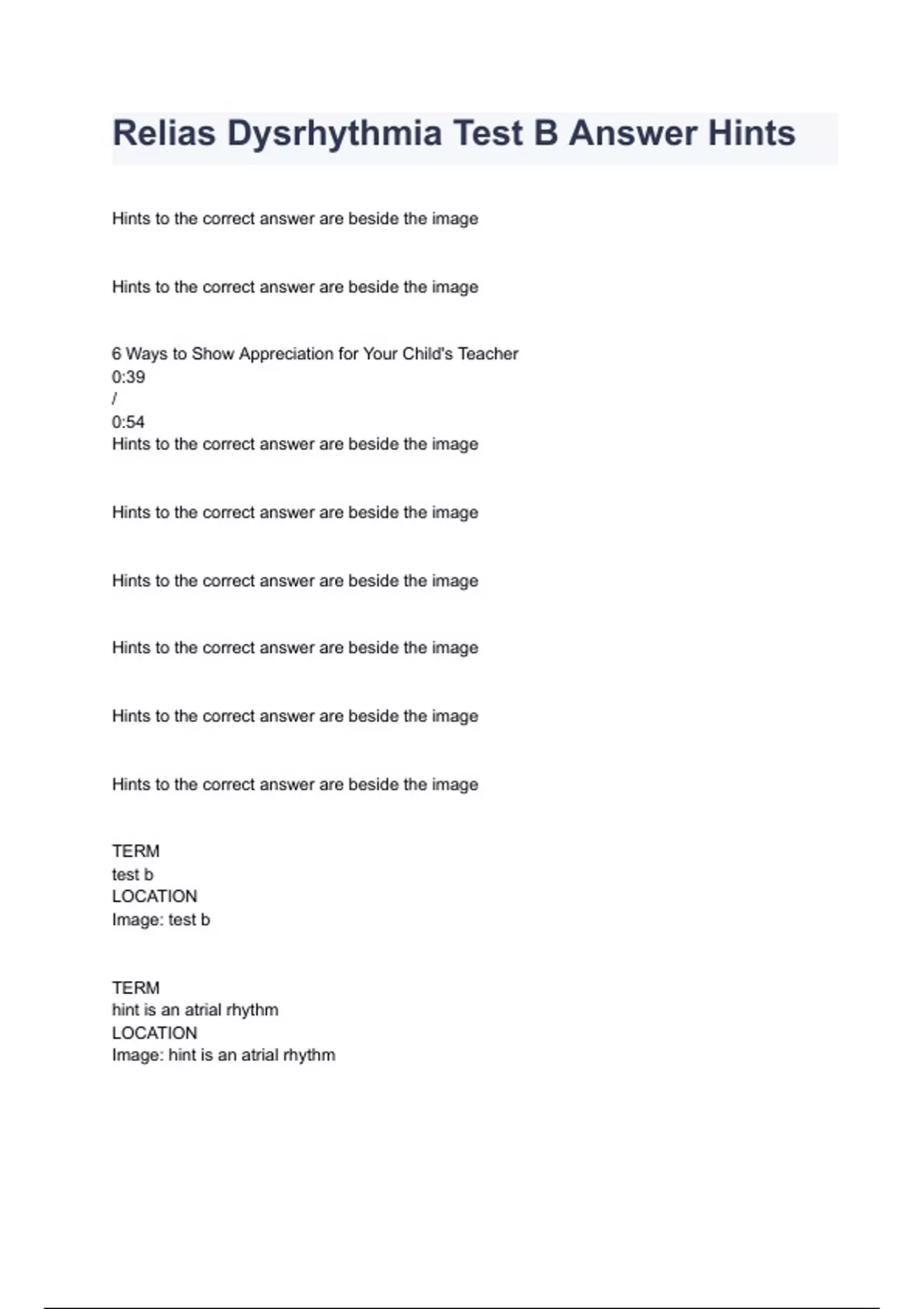 Relias Dysrhythmia Test B Answer Hints Questions & Answers A+ Graded.