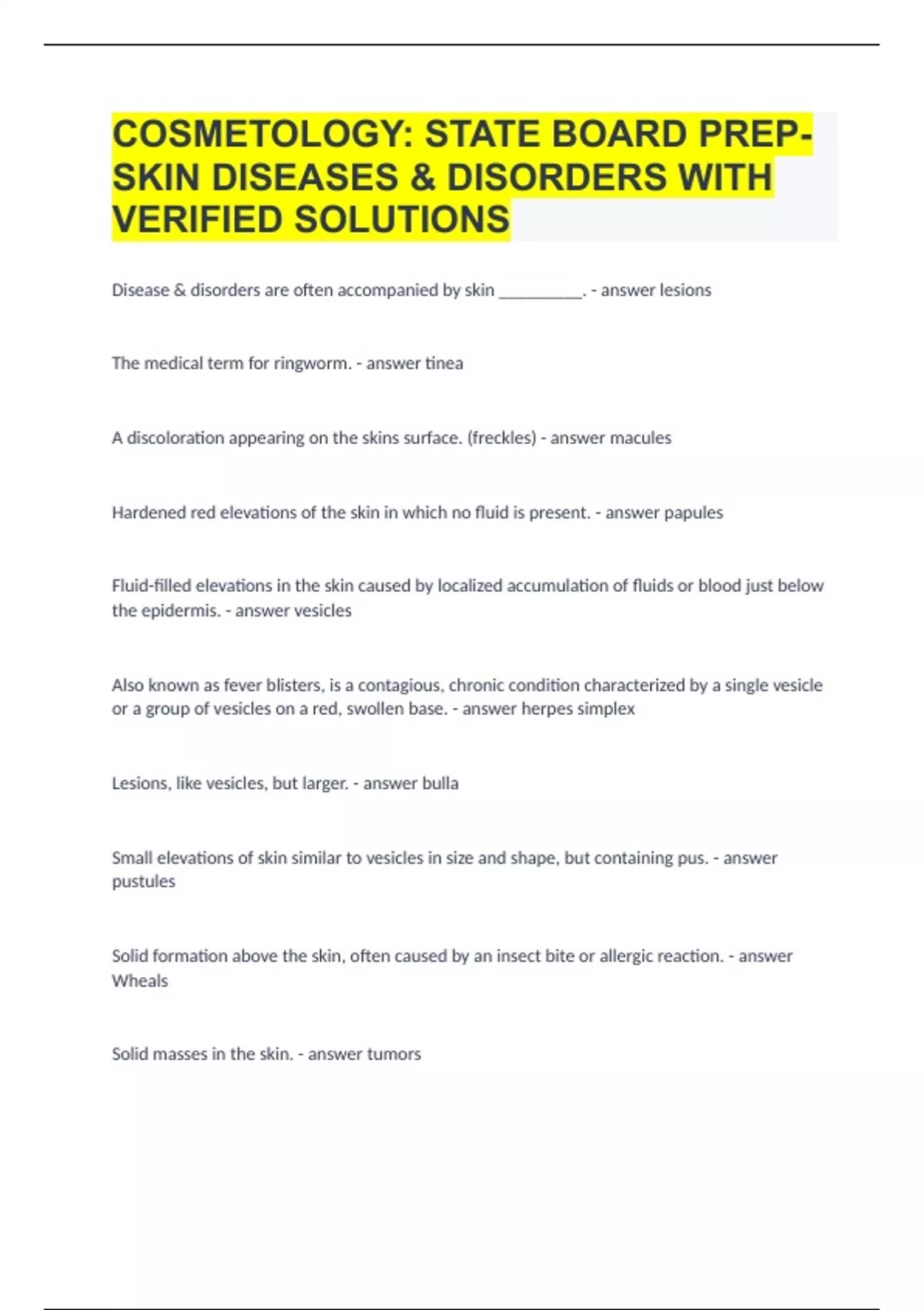 COSMETOLOGY STATE BOARD PREP- SKIN DISEASES & DISORDERS WITH VERIFIED SOLUTIONS