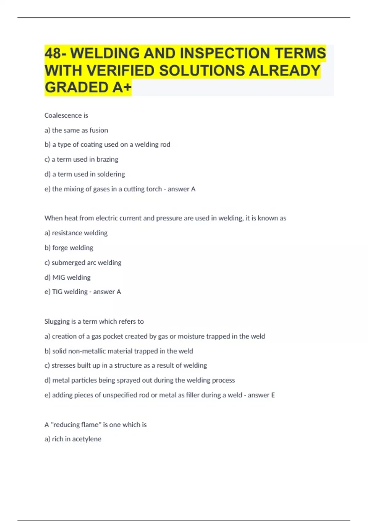 48- WELDING AND INSPECTION TERMS WITH VERIFIED SOLUTIONS ALREADY GRADED A+.