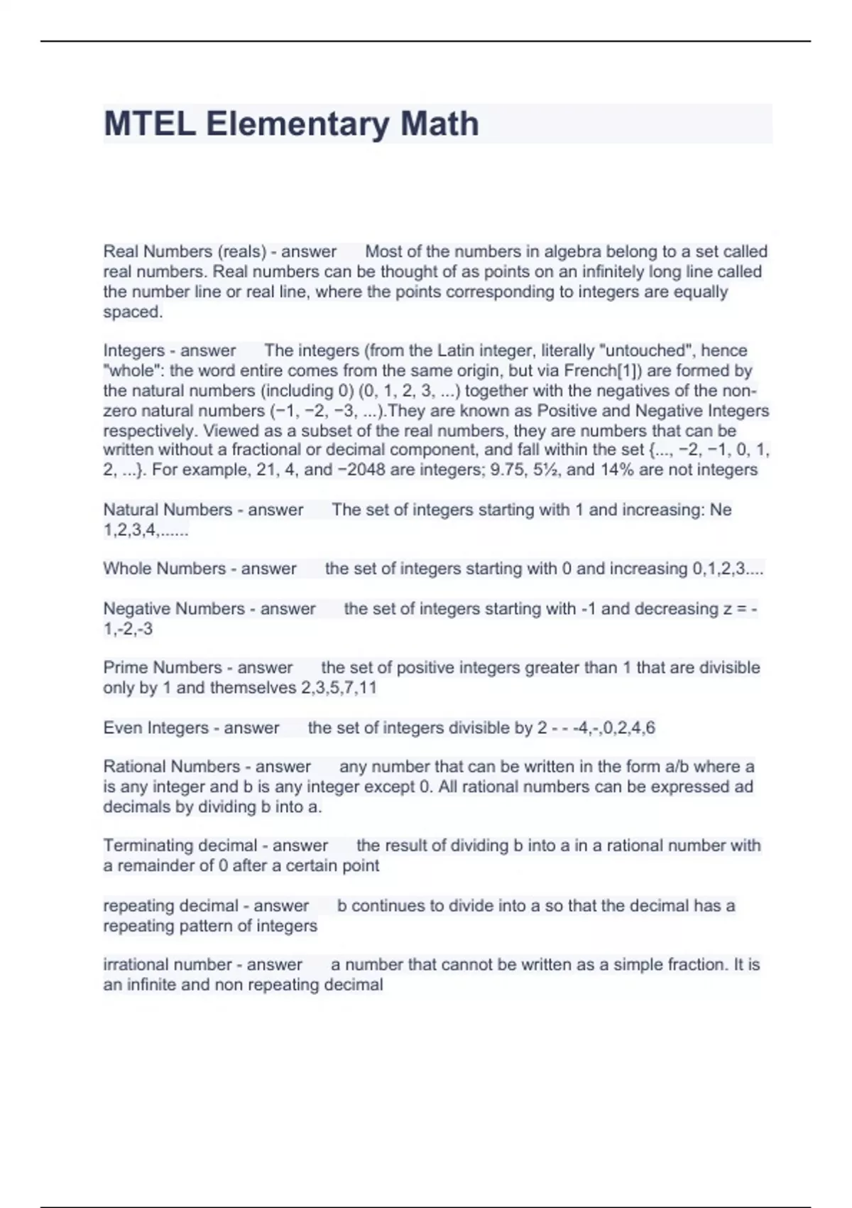 MTEL Elementary Math