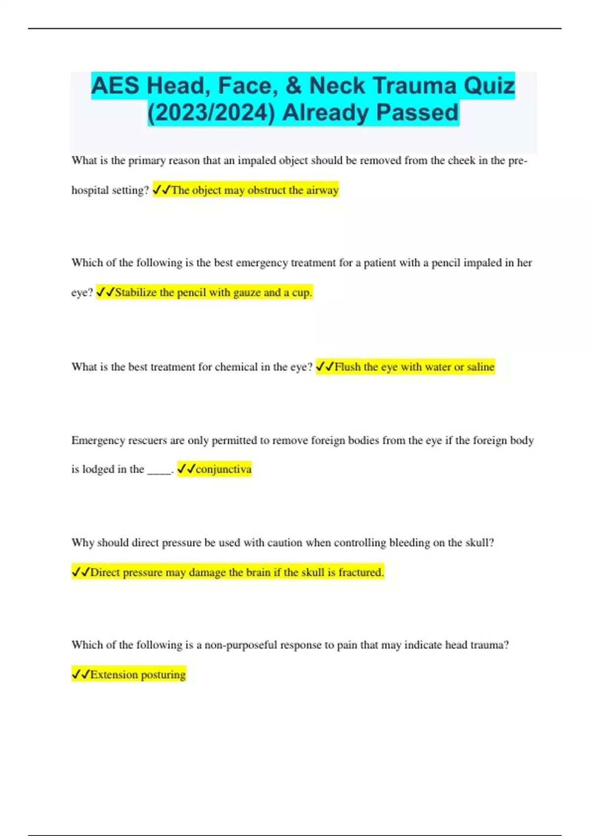 AES Head, Face, & Neck Trauma Quiz (2023/2024) Already Passed