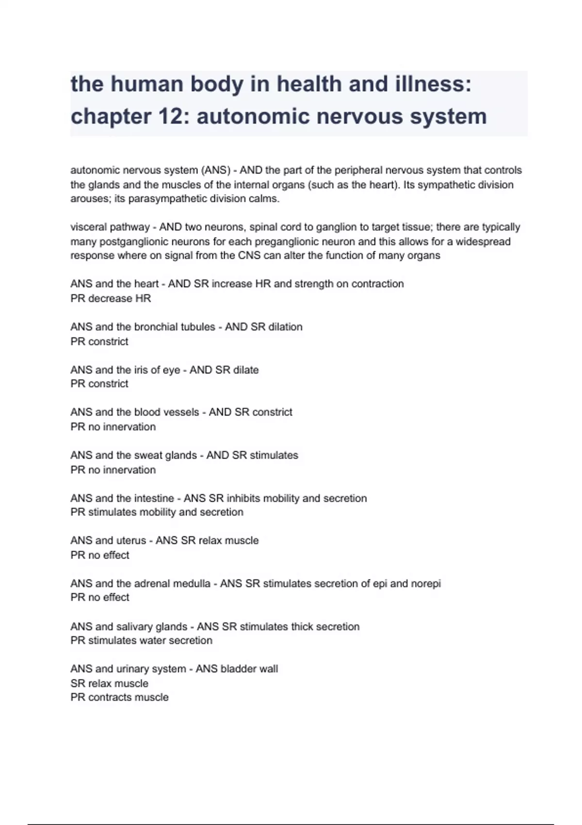 The human body in health and illness: chapter 12: autonomic nervous system Test bank Questions With Complete Solutions.