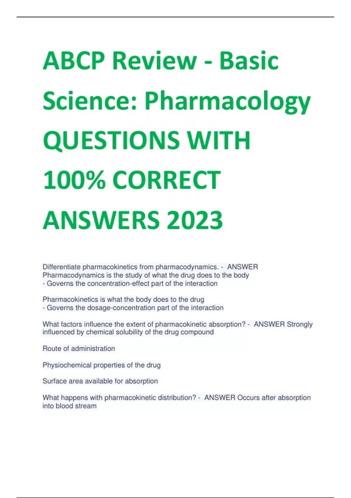 Updated ABCP Review - Basic Science: Pharmacology QUESTIONS WITH 100% CORRECT ANSWERS