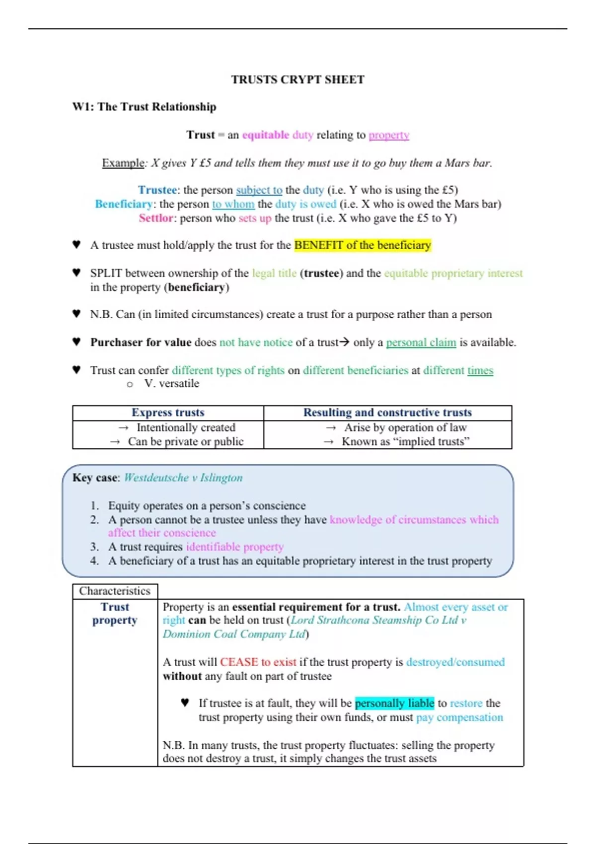 Trust = an equitable duty relating to property