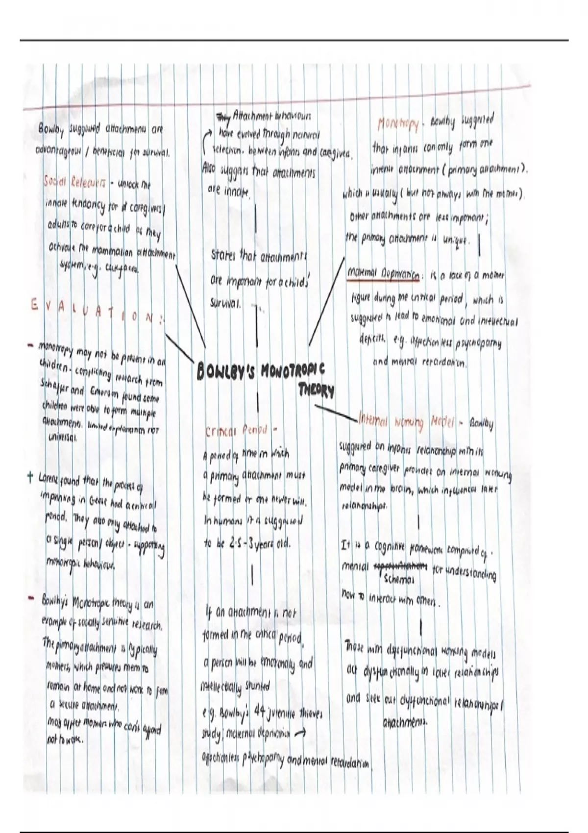 Summary Notes from A-level Psychology AQA Attachment AO1 and AO3 on Bowlby's Monotropic Theroy