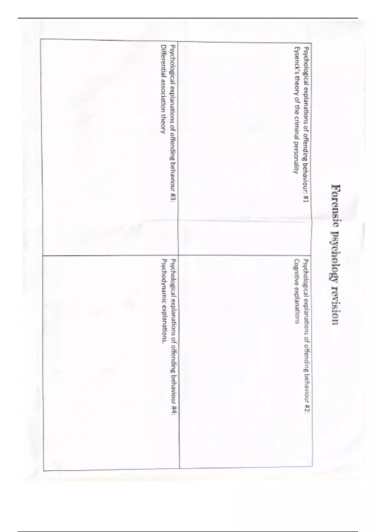 Revision Sheet with Eysenck, Cognitive explanations, Differential Association Theory, and Psychodynamic Explanations, Boxes for notes
