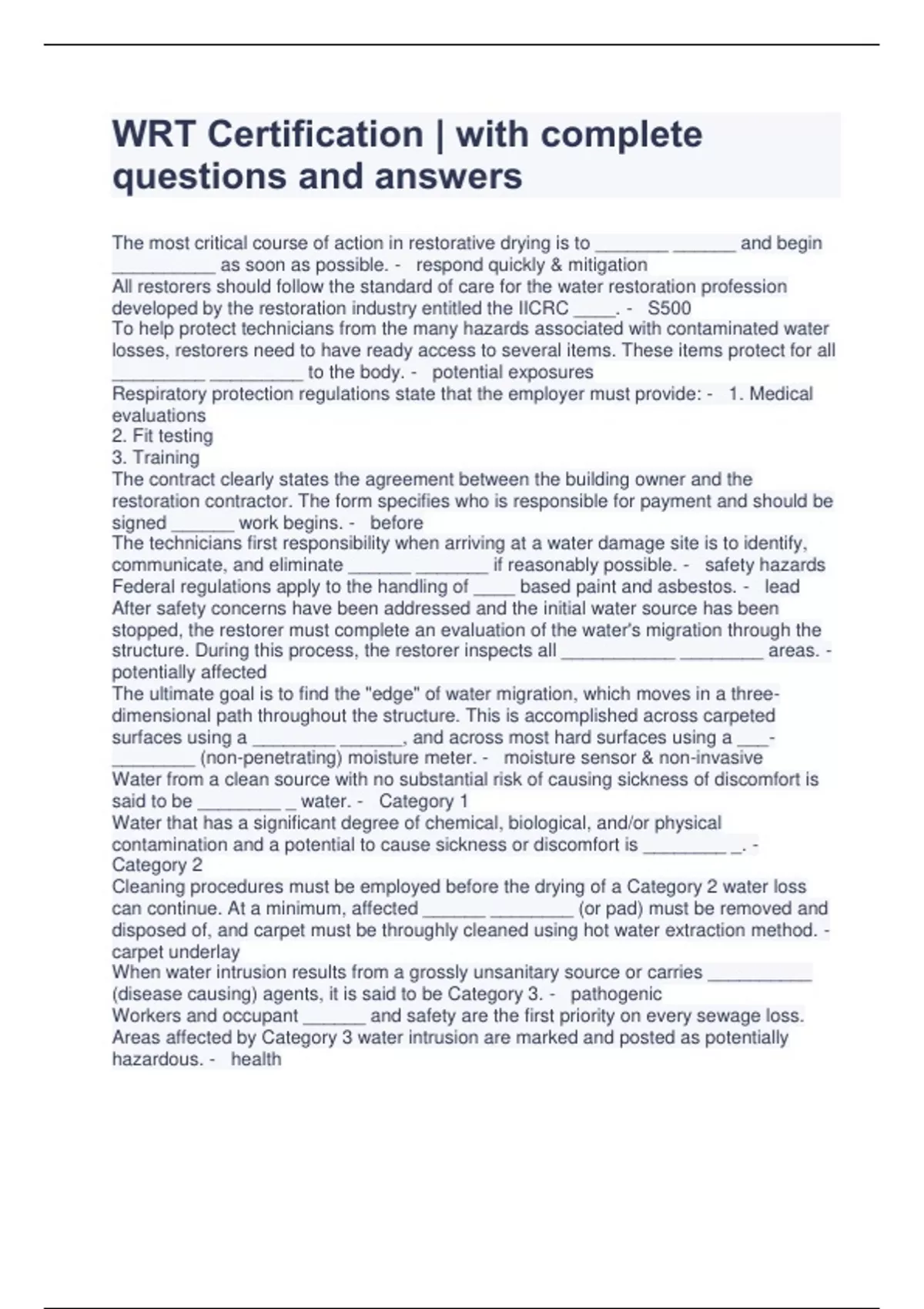 wrt certification with complete questions and an