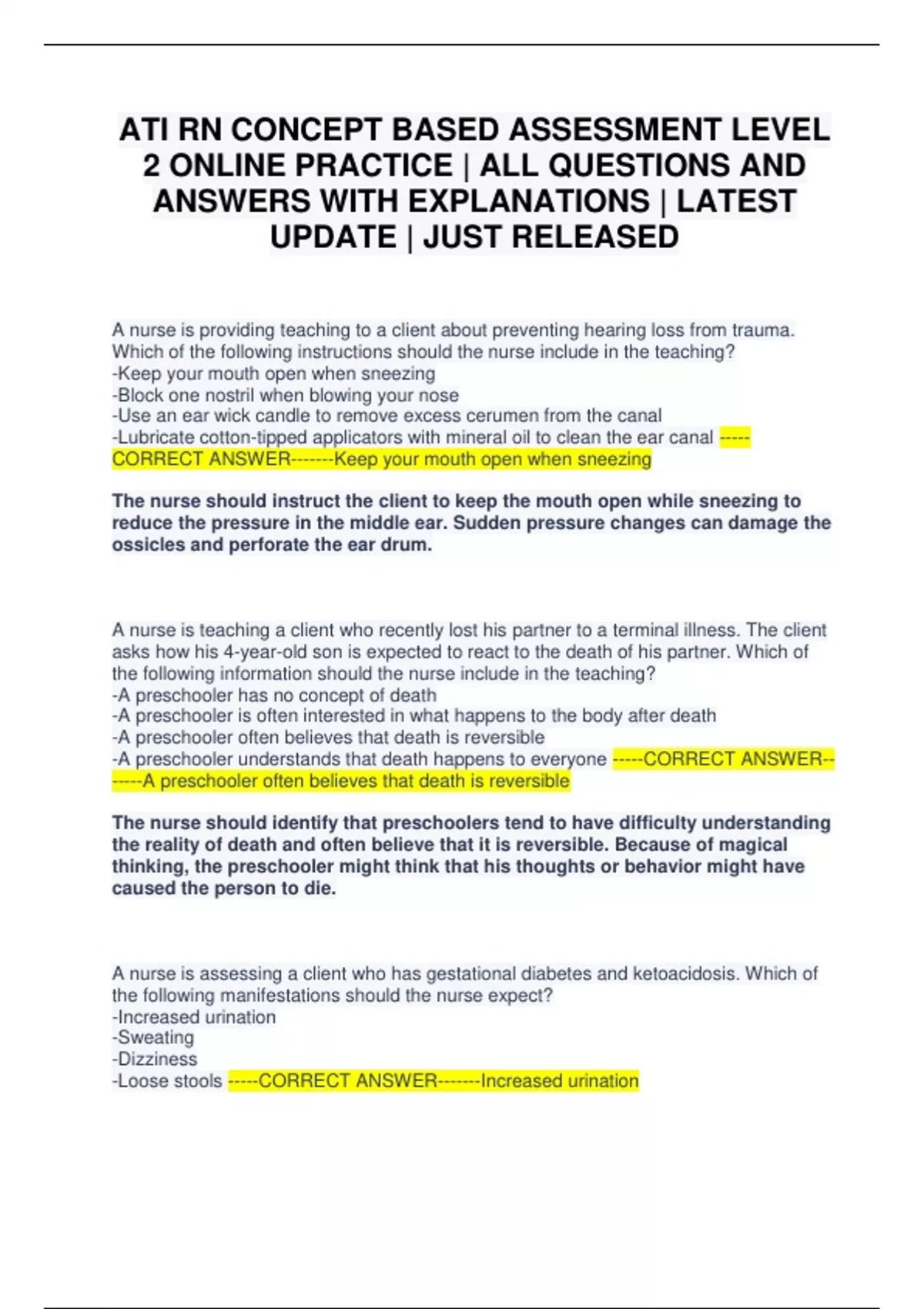 ATI RN CONCEPT BASED ASSESSMENT LEVEL 2 ONLINE PRACTICE | ALL QUESTIONS AND ANSWERS WITH EXPLANATIONS | LATEST UPDATE | JUST RELEASED