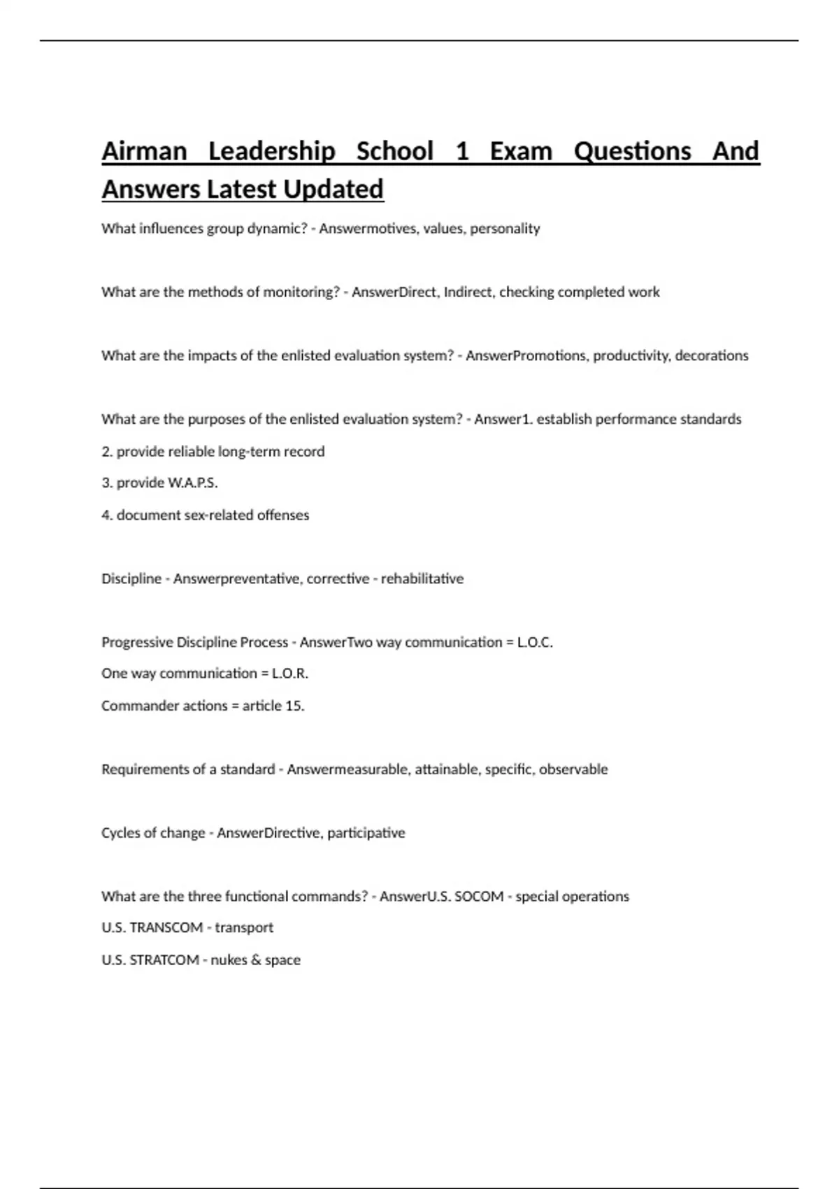 Airman Leadership School 1 Exam Questions And Answers Latest Updated