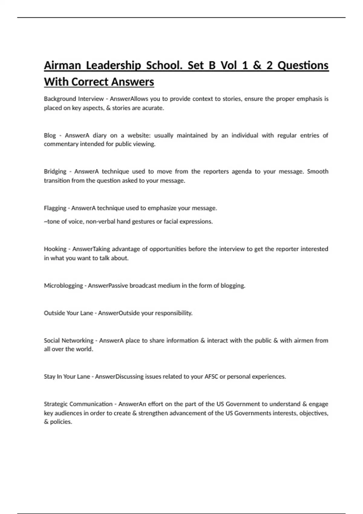 Airman Leadership School. Set B Vol 1 & 2 Questions With Correct Answers