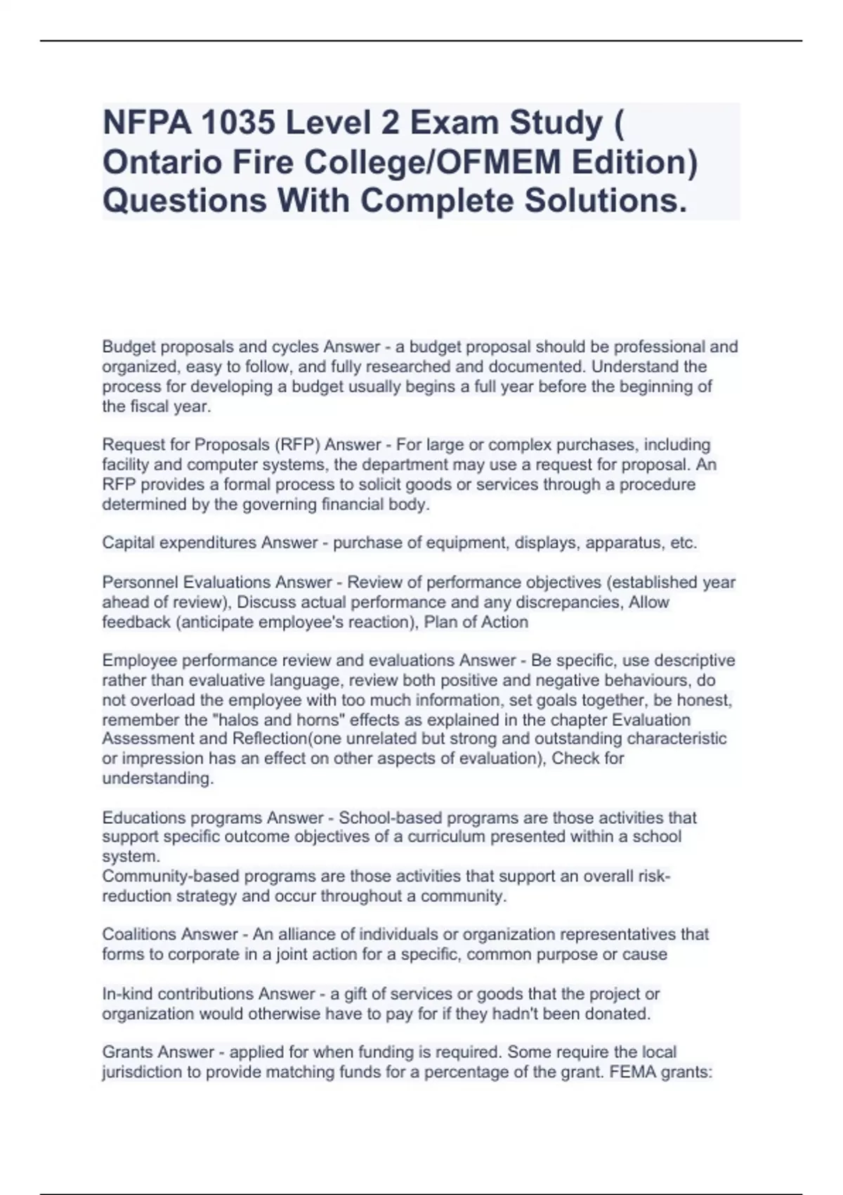 NFPA 1035 Level 2 Exam Study ( Ontario Fire College/OFMEM Edition) Questions With Complete Solutions.