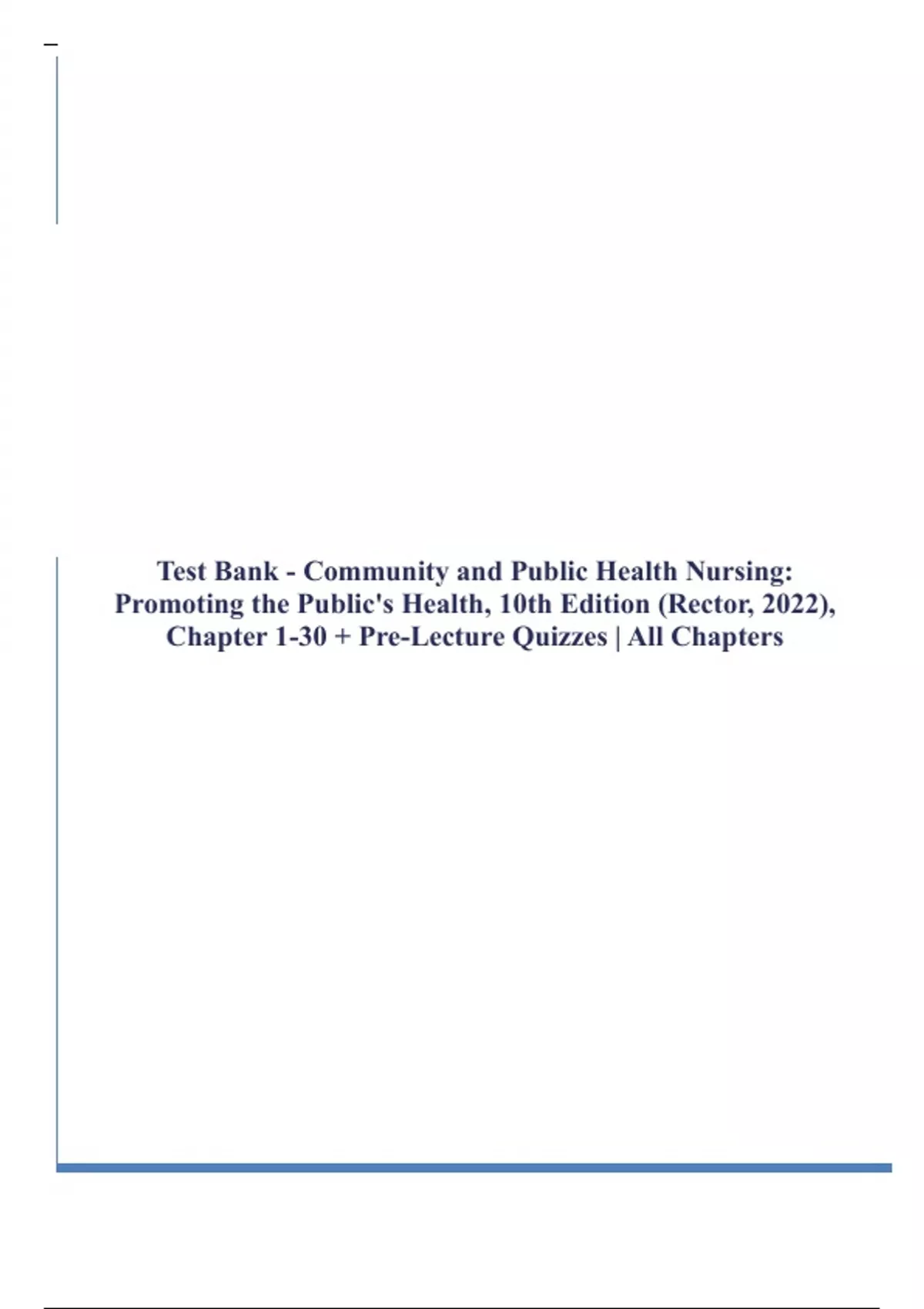,Community and Public Health Nursing: Promoting the Public’s Health, 10th Edition Rector Test Bank