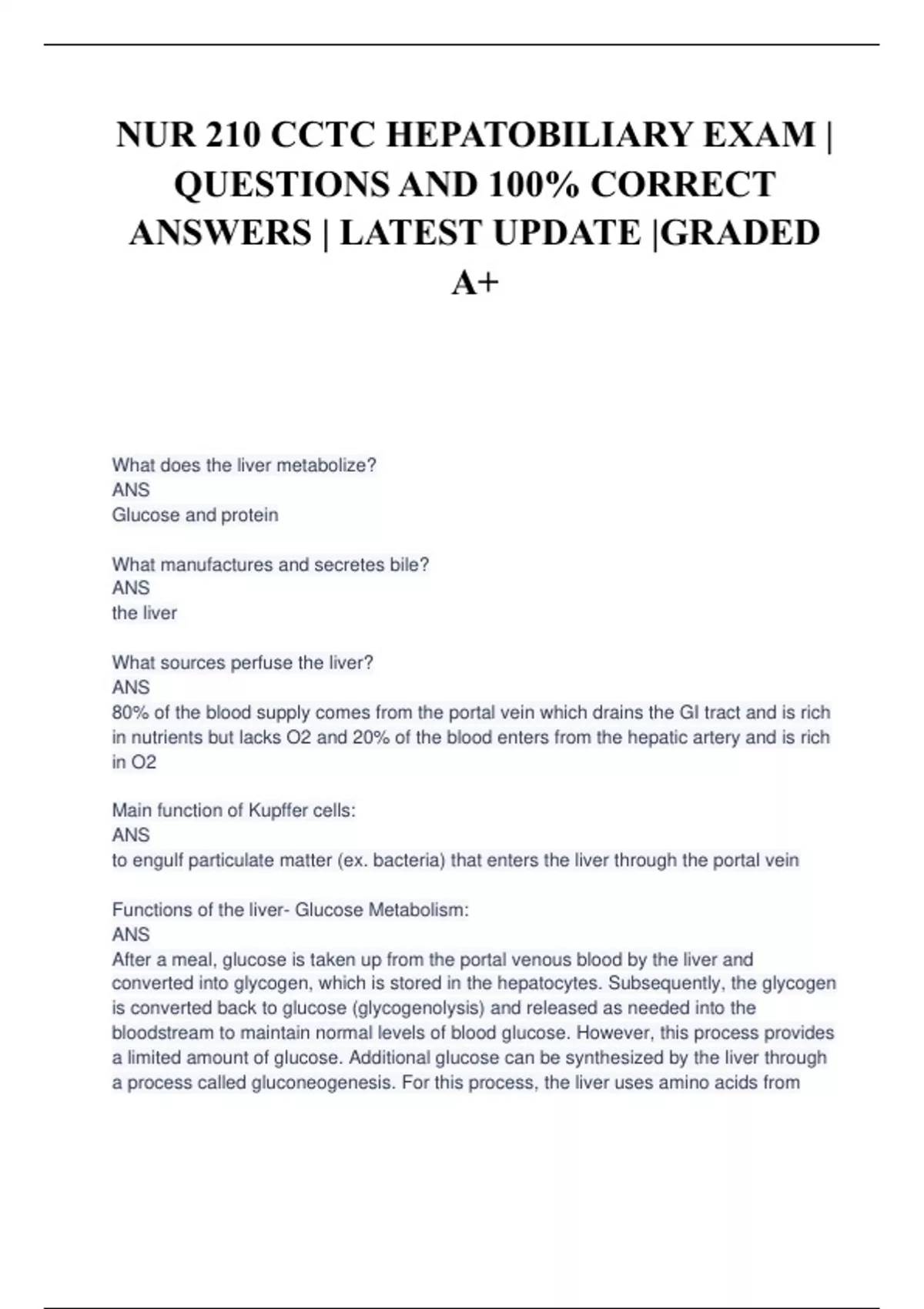 NUR 210 CCTC HEPATOBILIARY EXAM | QUESTIONS AND 100% CORRECT ANSWERS | LATEST UPDATE |GRADED A+