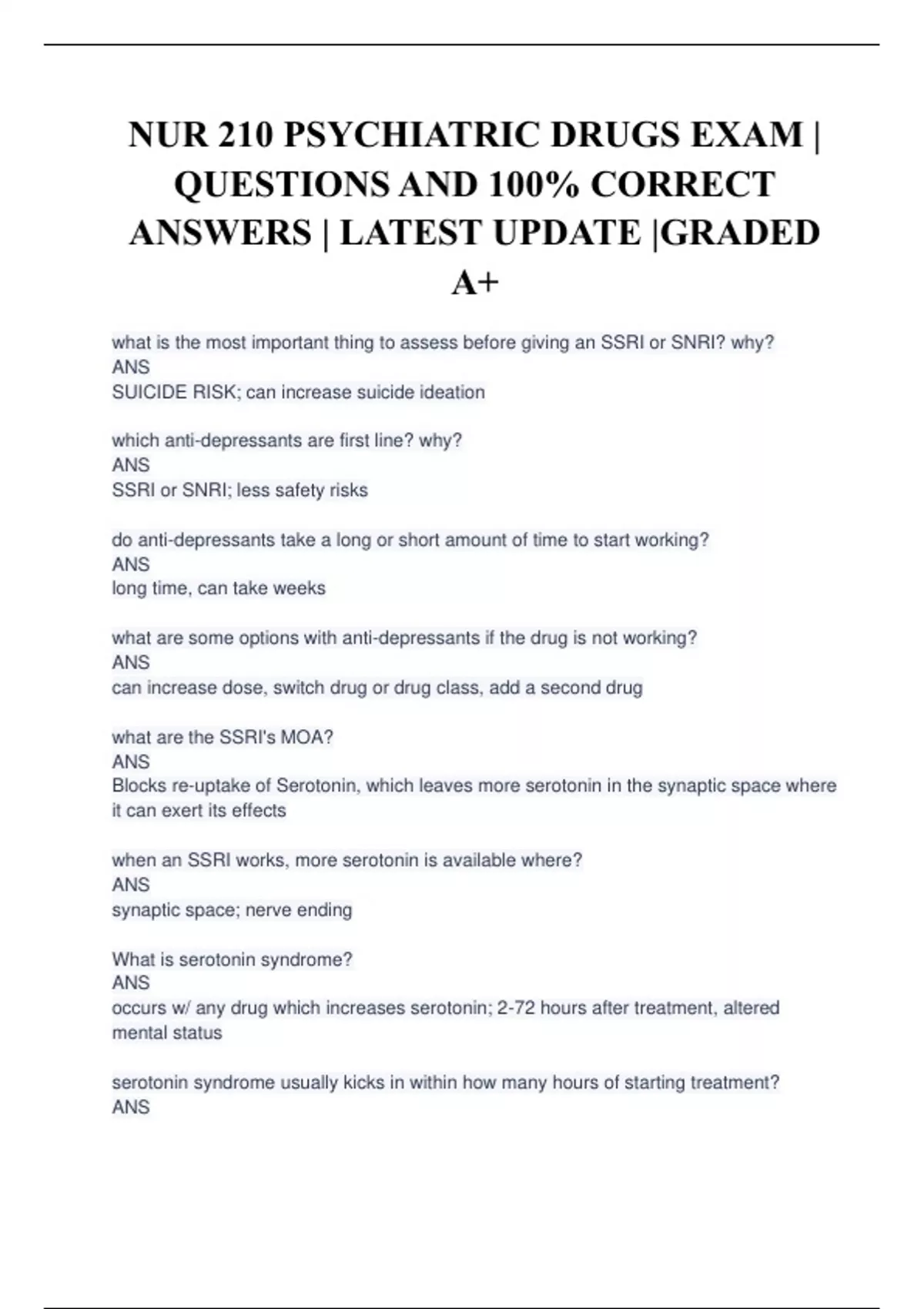 NUR 210 PSYCHIATRIC DRUGS EXAM | QUESTIONS AND 100% CORRECT ANSWERS | LATEST UPDATE |GRADED A+