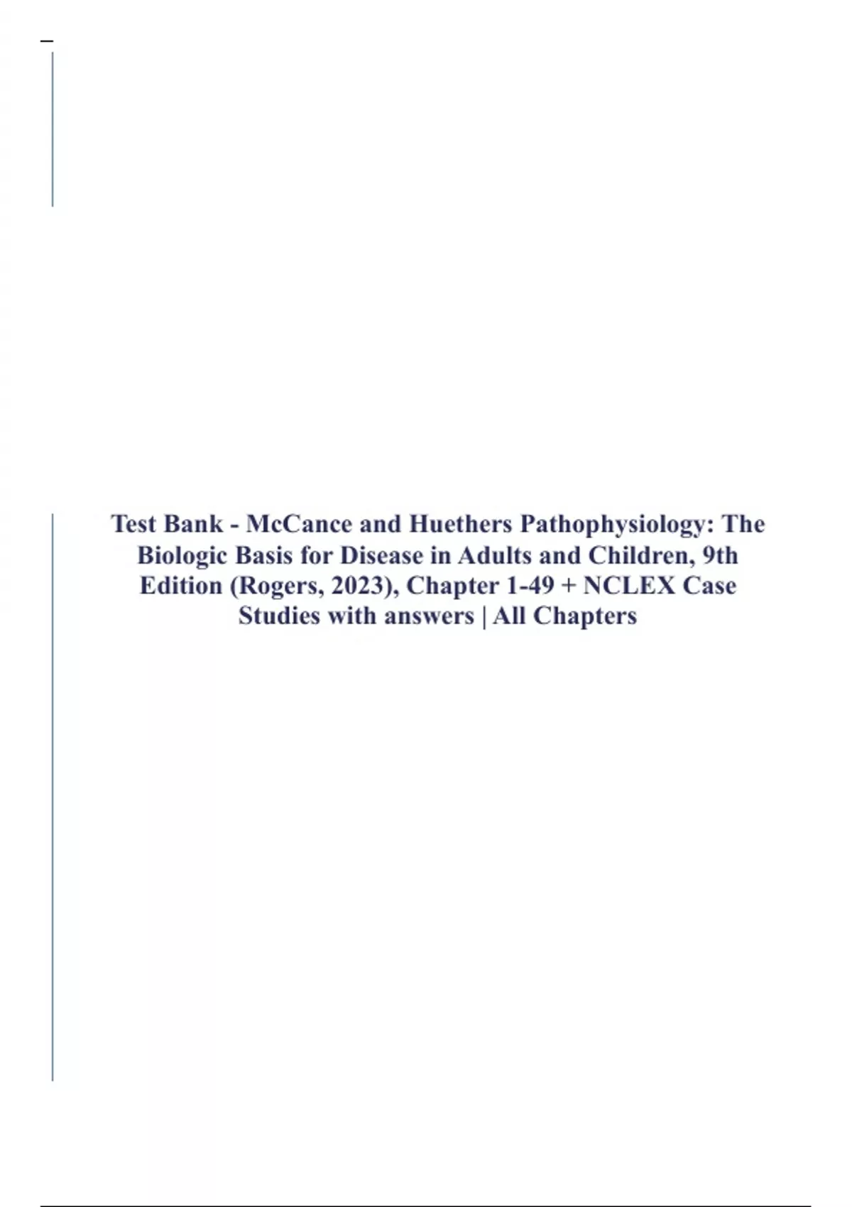 Test Bank - McCance and Huethers Pathophysiology: The Biologic Basis for Disease in Adults and Children, 9th Edition (Rogers, 2023), Chapter 1-49 + NCLEX Case Studies with answers | All Chapters