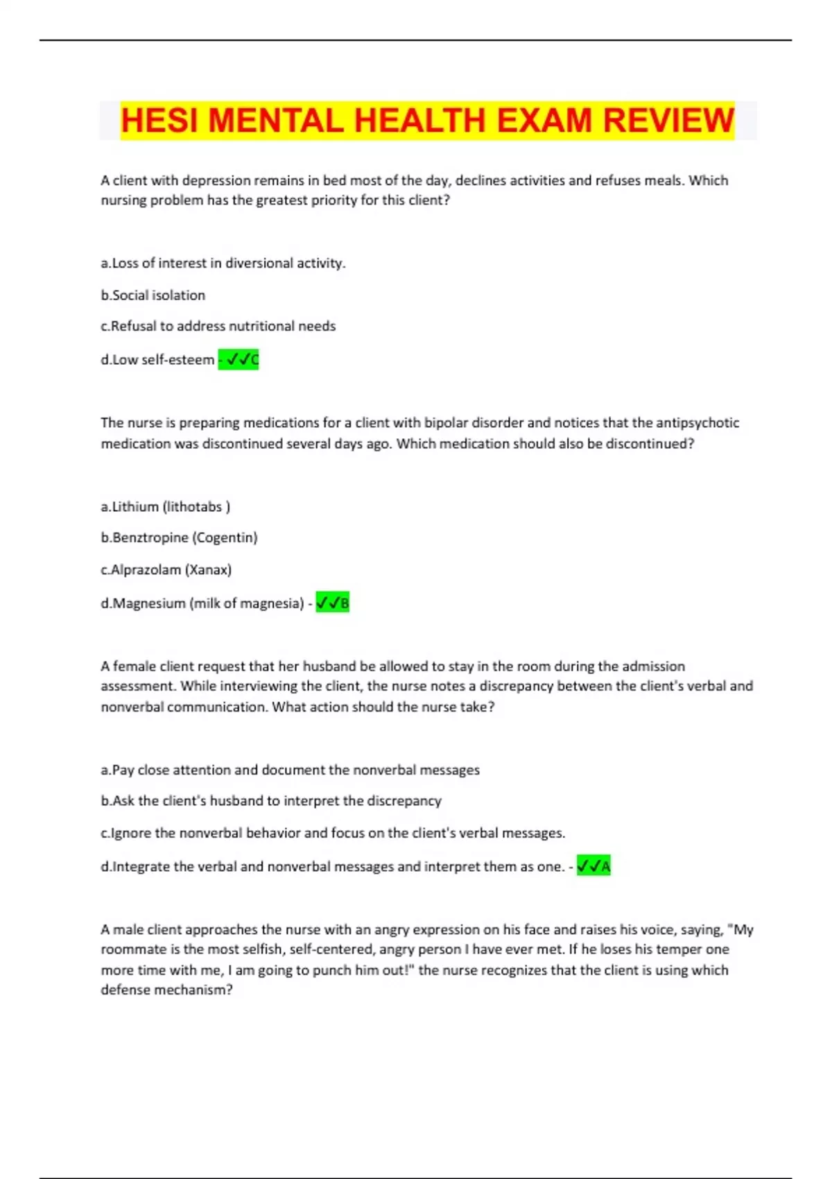 HESI MENTAL HEALTH EXAM REVIEW Questions and answers, 100% Accurate, rated A+