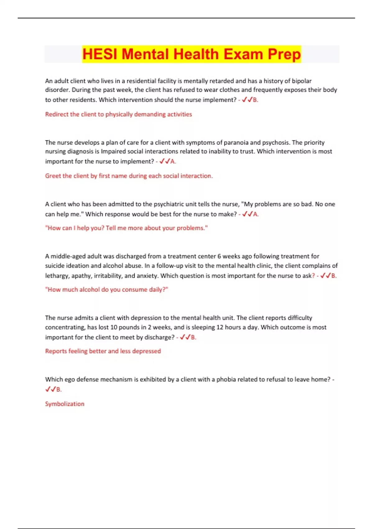 HESI Mental Health Exam Prep Questions and answers, 100% Accurate, rated A+