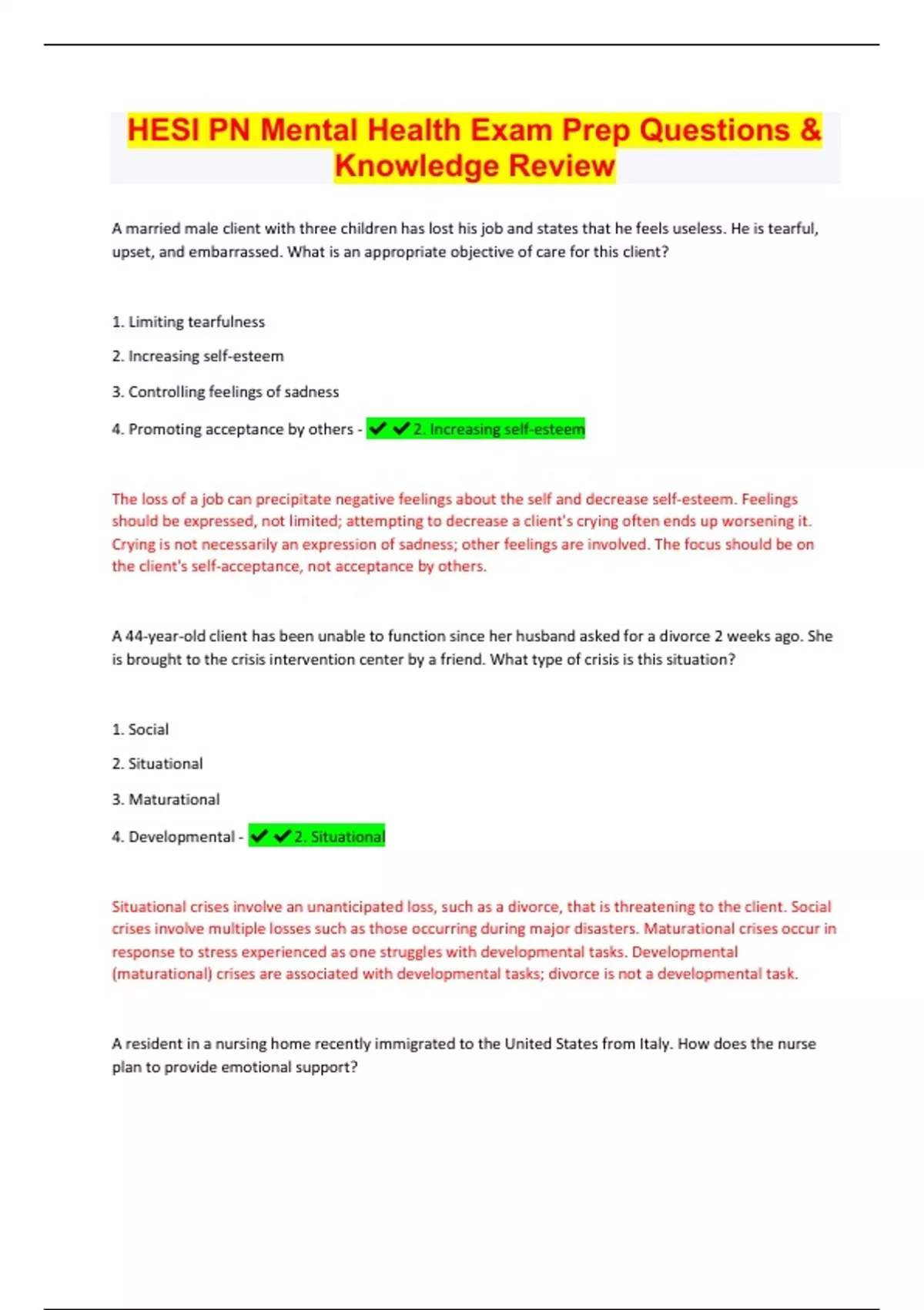 HESI PN Mental Health Exam Prep Questions & Knowledge Review Questions and answers, 100% Accurate, rated A+