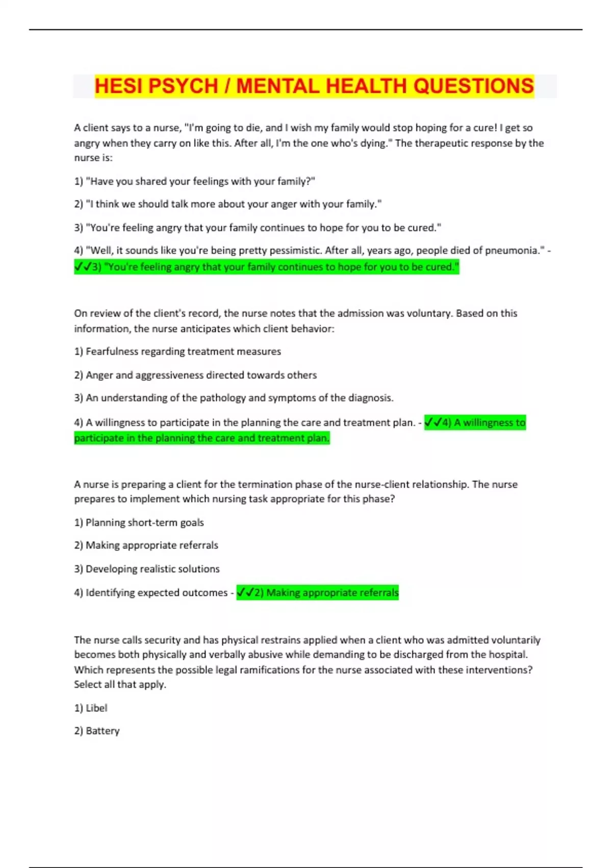 HESI PSYCH / MENTAL HEALTH Questions and answers, 100% Accurate, rated A+