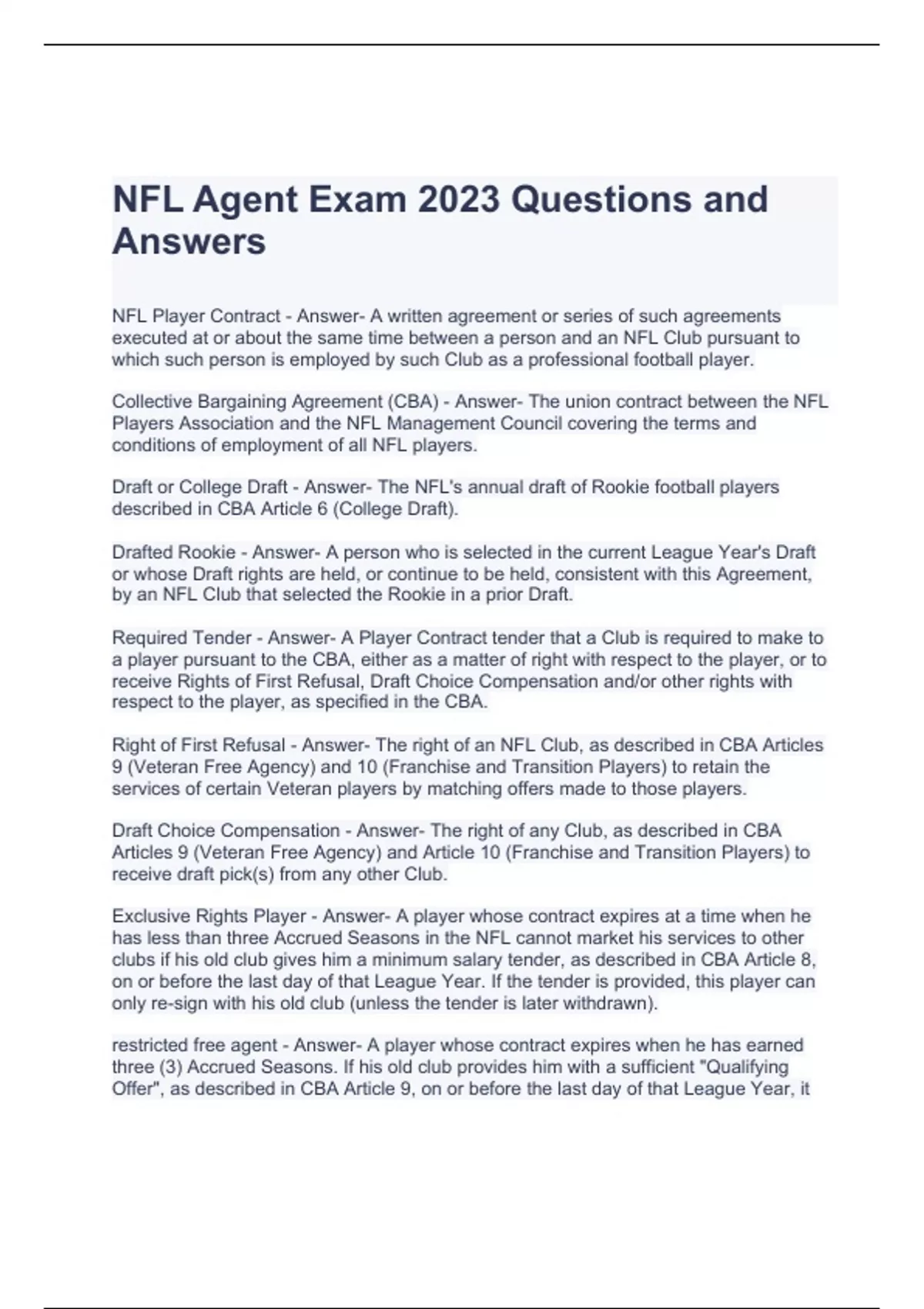 NFL Agent Exam 2023 Questions and Answers | Graded A