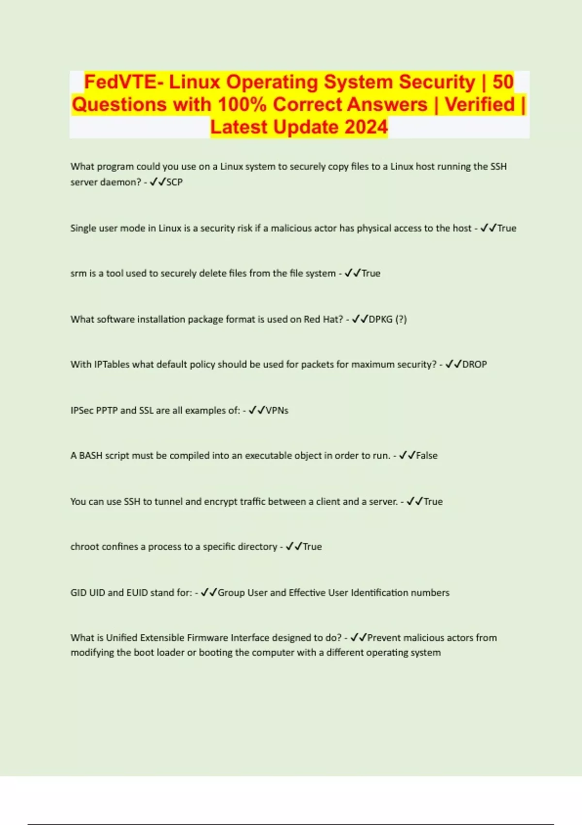 FedVTE- Linux Operating System Security | 50 Questions with 100% Correct Answers | Verified | Latest Update 2024