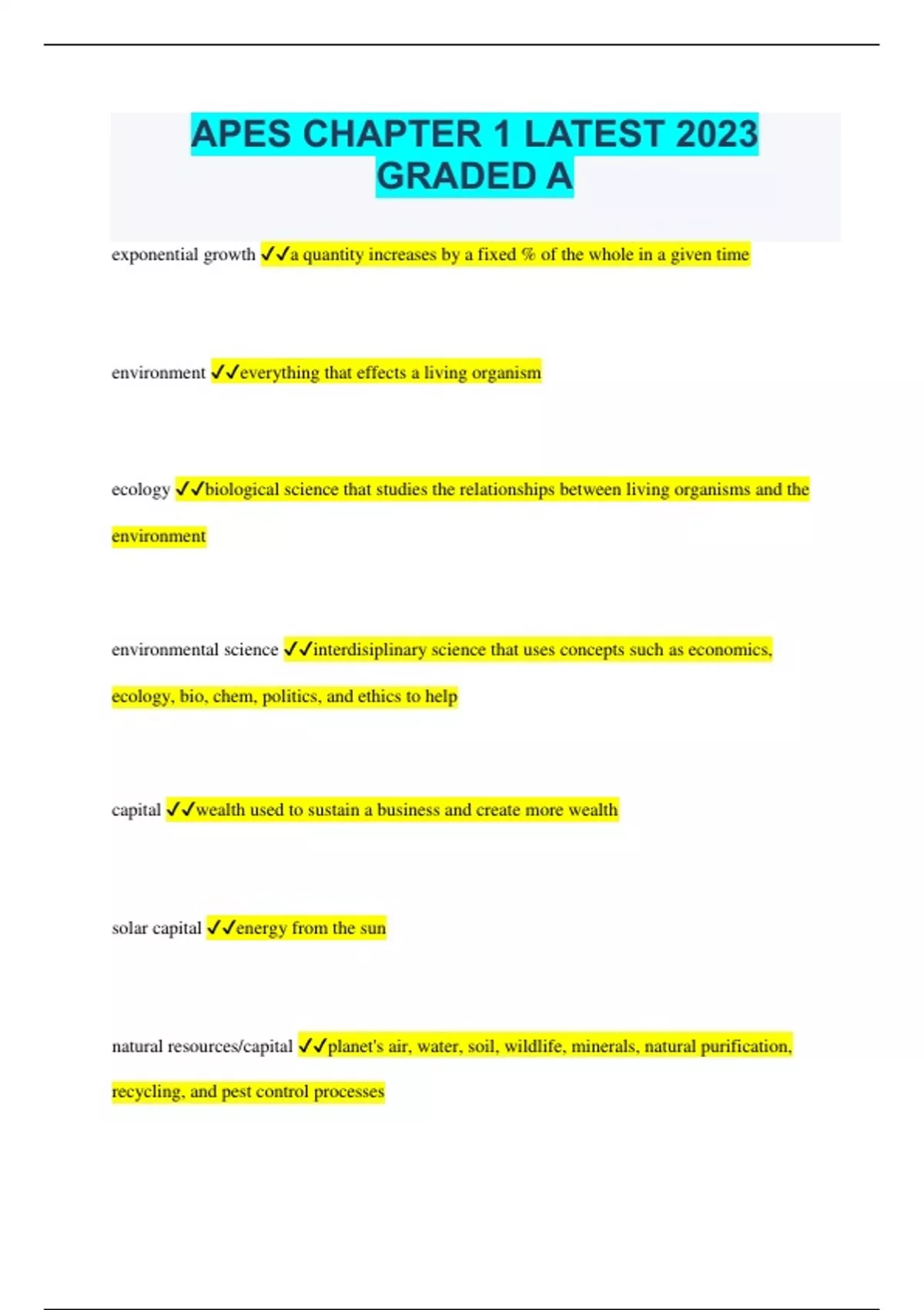APES CHAPTER 1 LATEST 2023 GRADED A