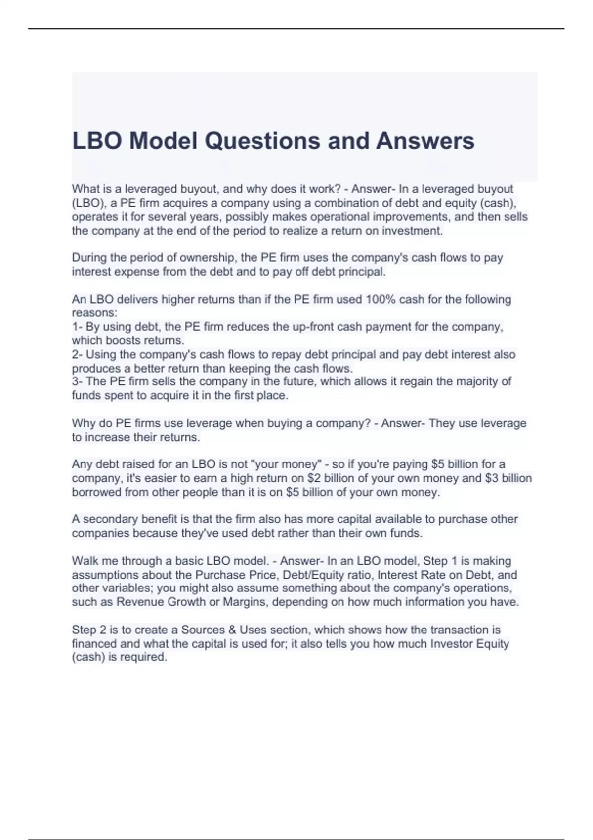 LBO Model Questions and Answers