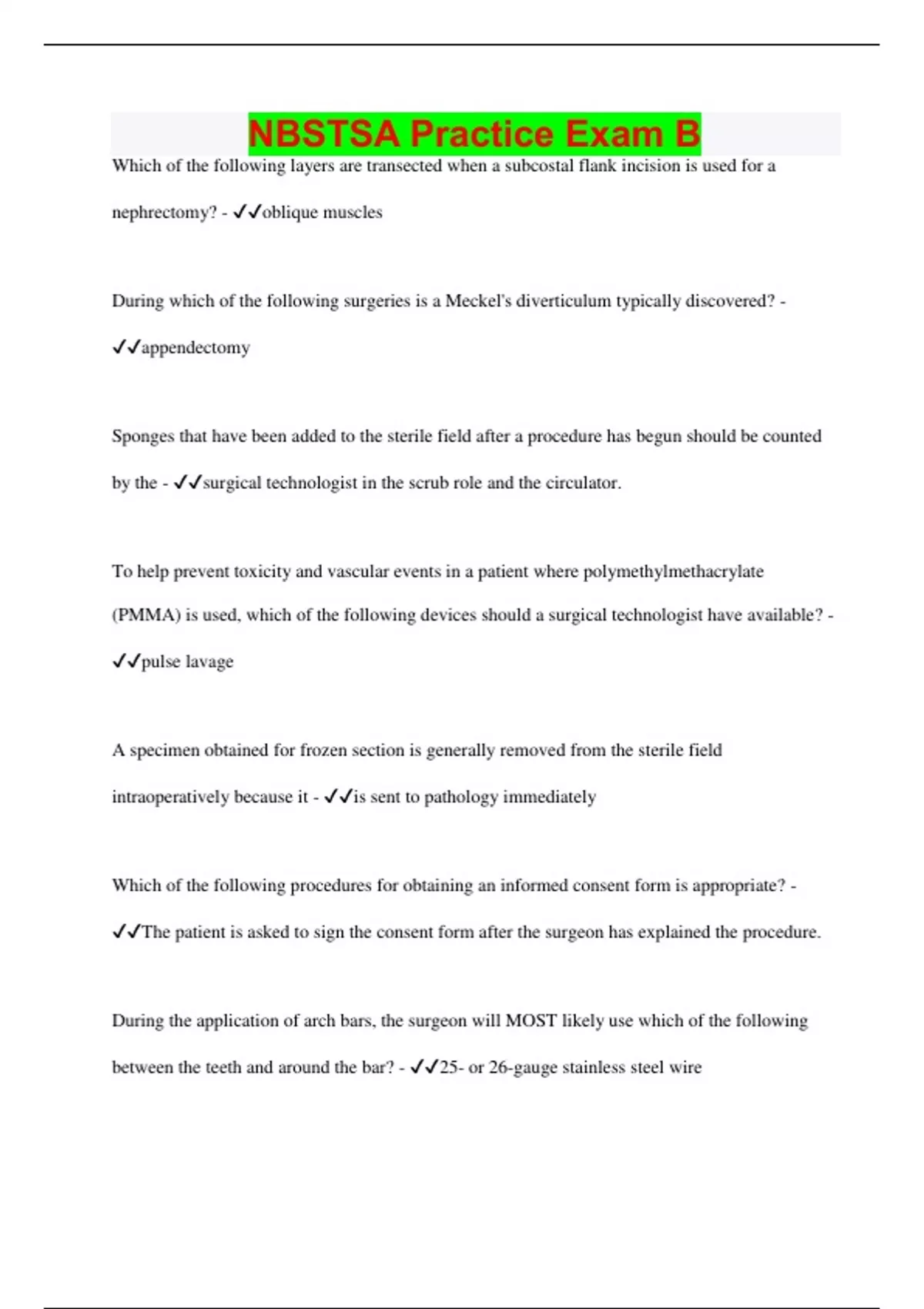 NBSTSA Practice Exam B Questions with 100% Correct Answers | Latest Update 2024 | Verified