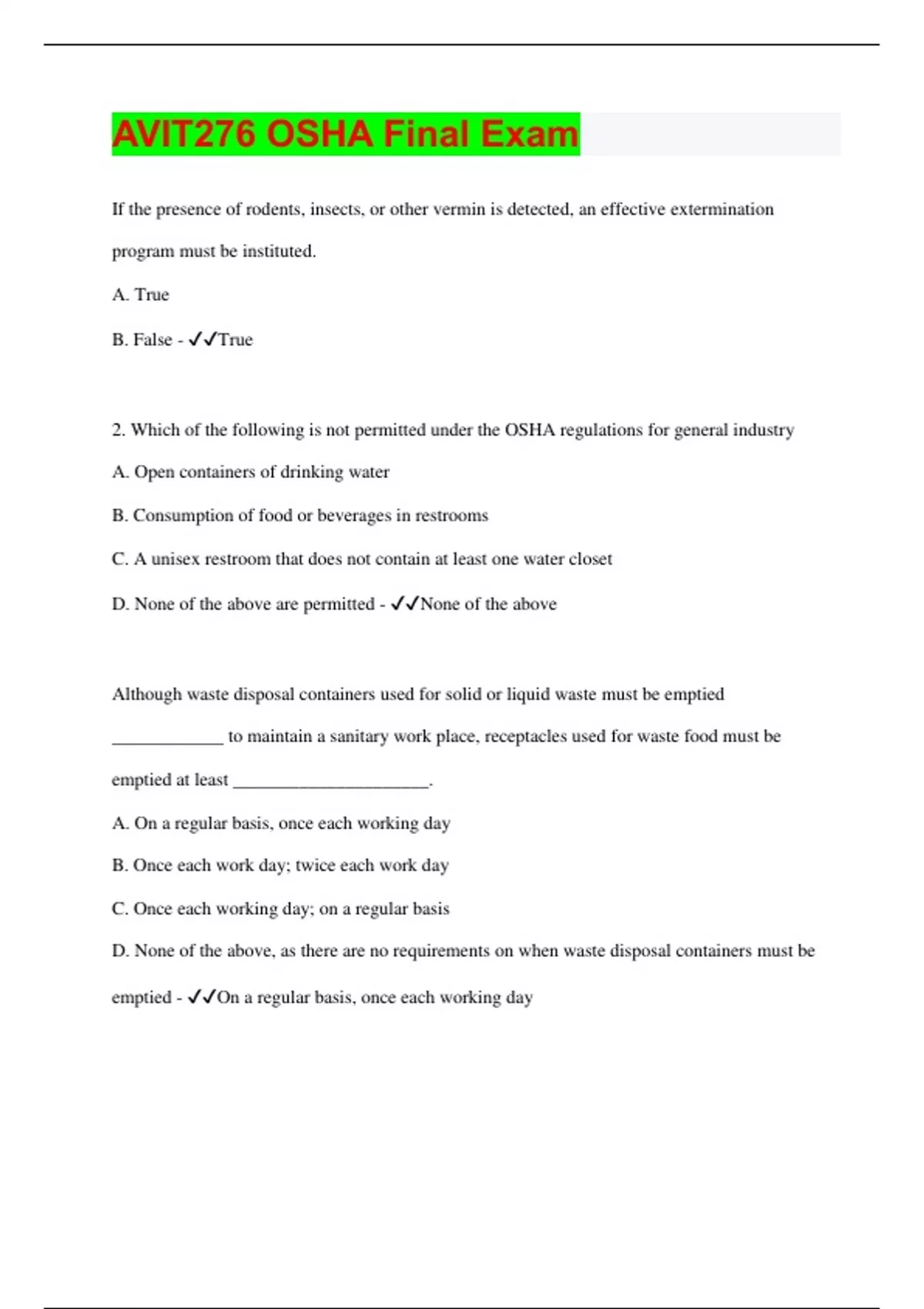 AVIT276 OSHA Final Exam Questions with 100% Correct Answers | Latest Update 2024 | Verified