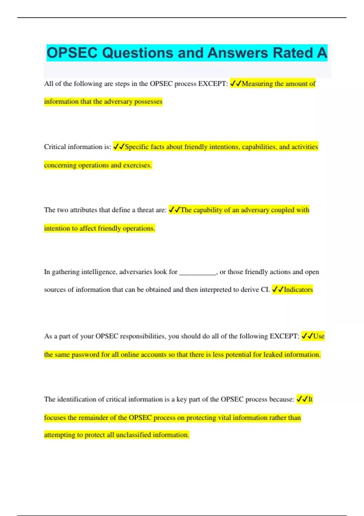 OPSEC Questions and Answers Rated A