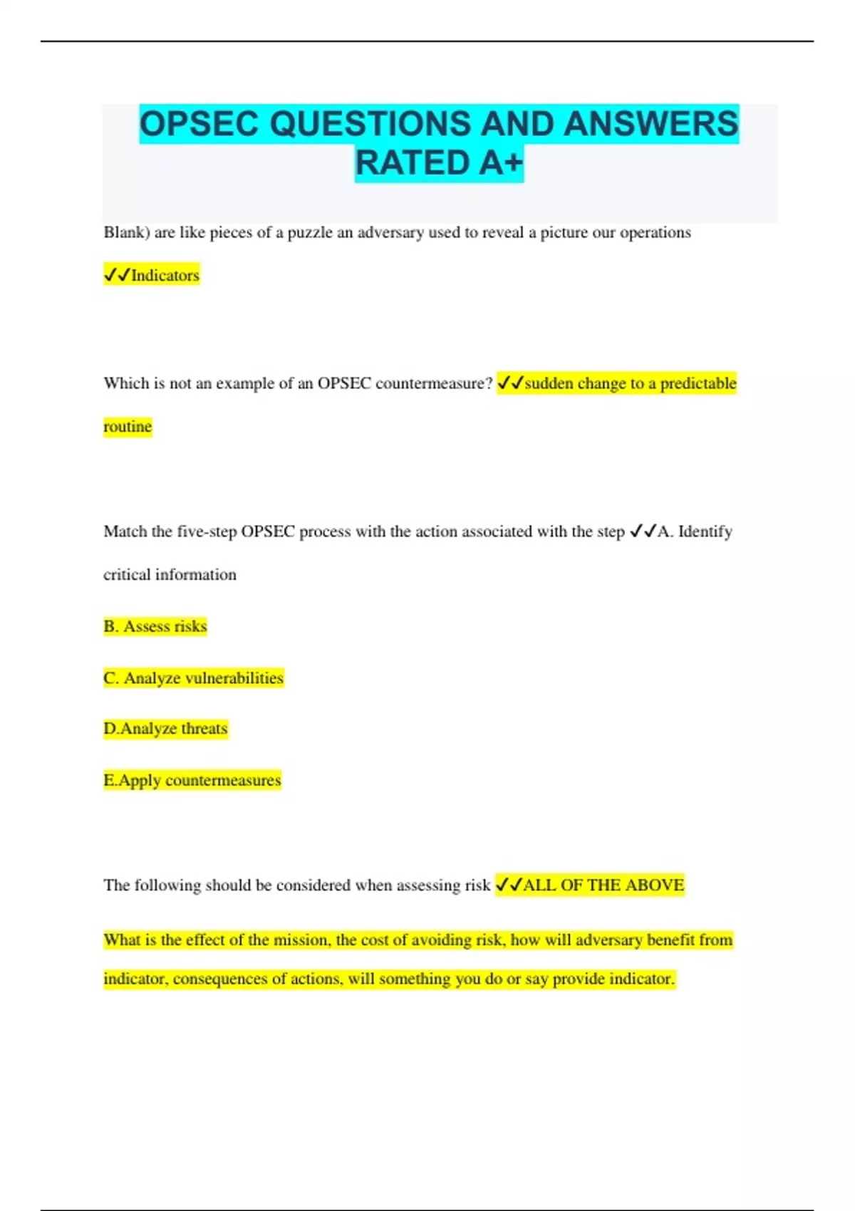 OPSEC QUESTIONS AND ANSWERS RATED A+