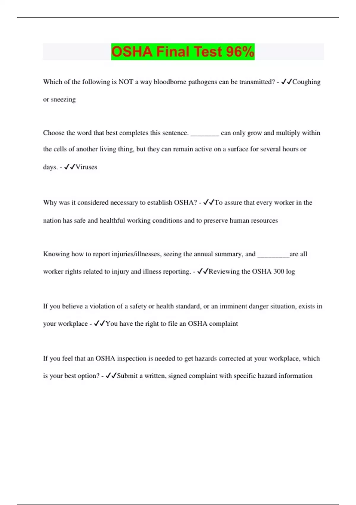 OSHA Final Test 96% Latest Update 2024 | Verified