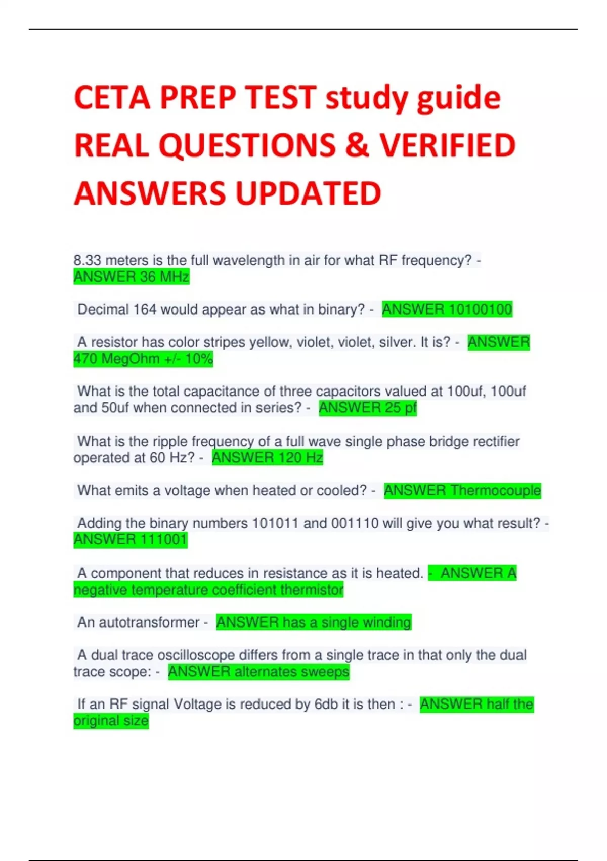 CETA PREP TEST study guide REAL QUESTIONS & VERIFIED ANSWERS UPDATED