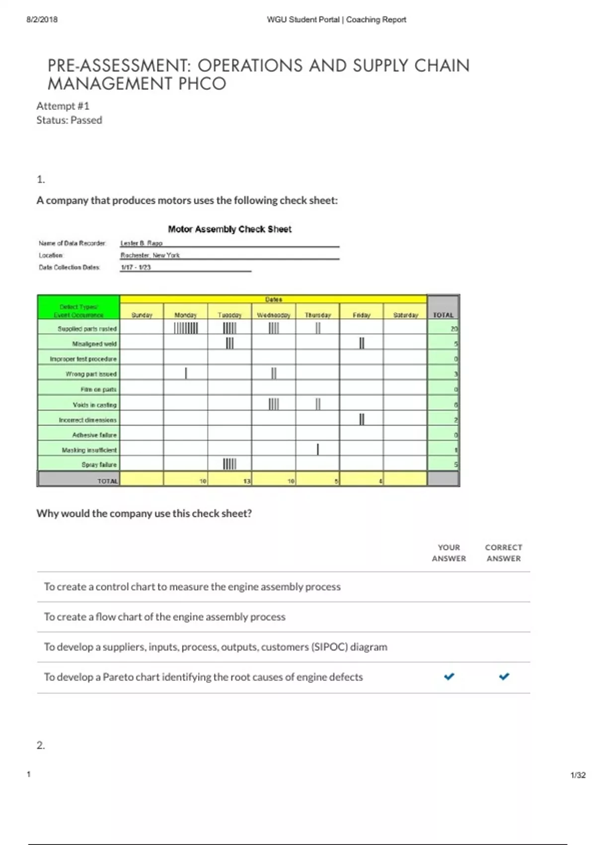 PRE-ASSESSMENT: OPERATIONS AND SUPPLY CHAIN MANAGEMENT PHCO