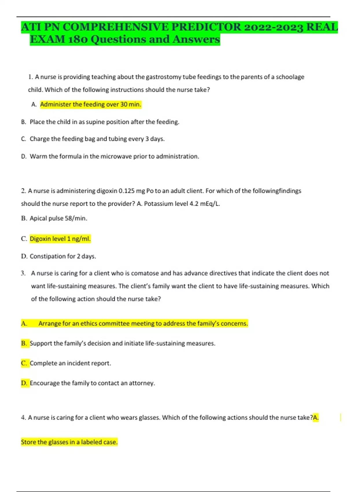 ATI PN COMPREHENSIVE PREDICTOR REAL EXAM 180 Questions and Answers