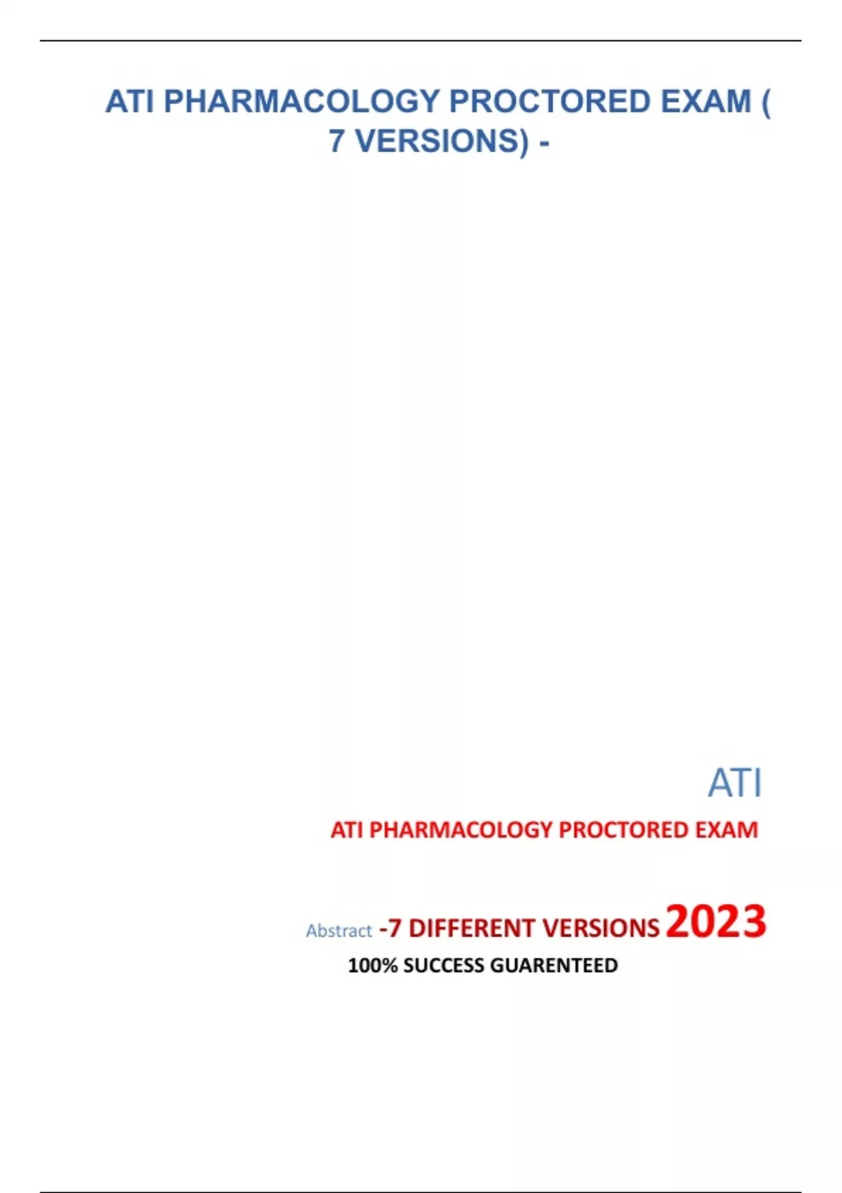 ATI ATI PHARMACOLOGY PROCTORED EXAM Abstract -7 DIFFERENT VERSIONS2023 100% SUCCESS GUARENTEED