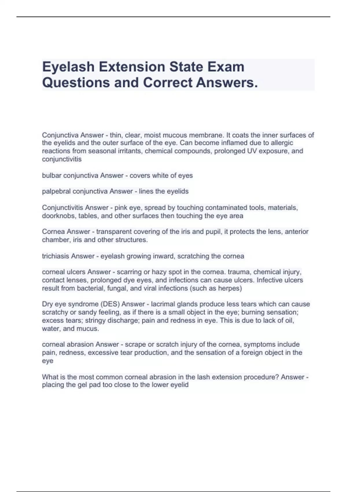Eyelash Extension State Exam Questions and Correct Answers.