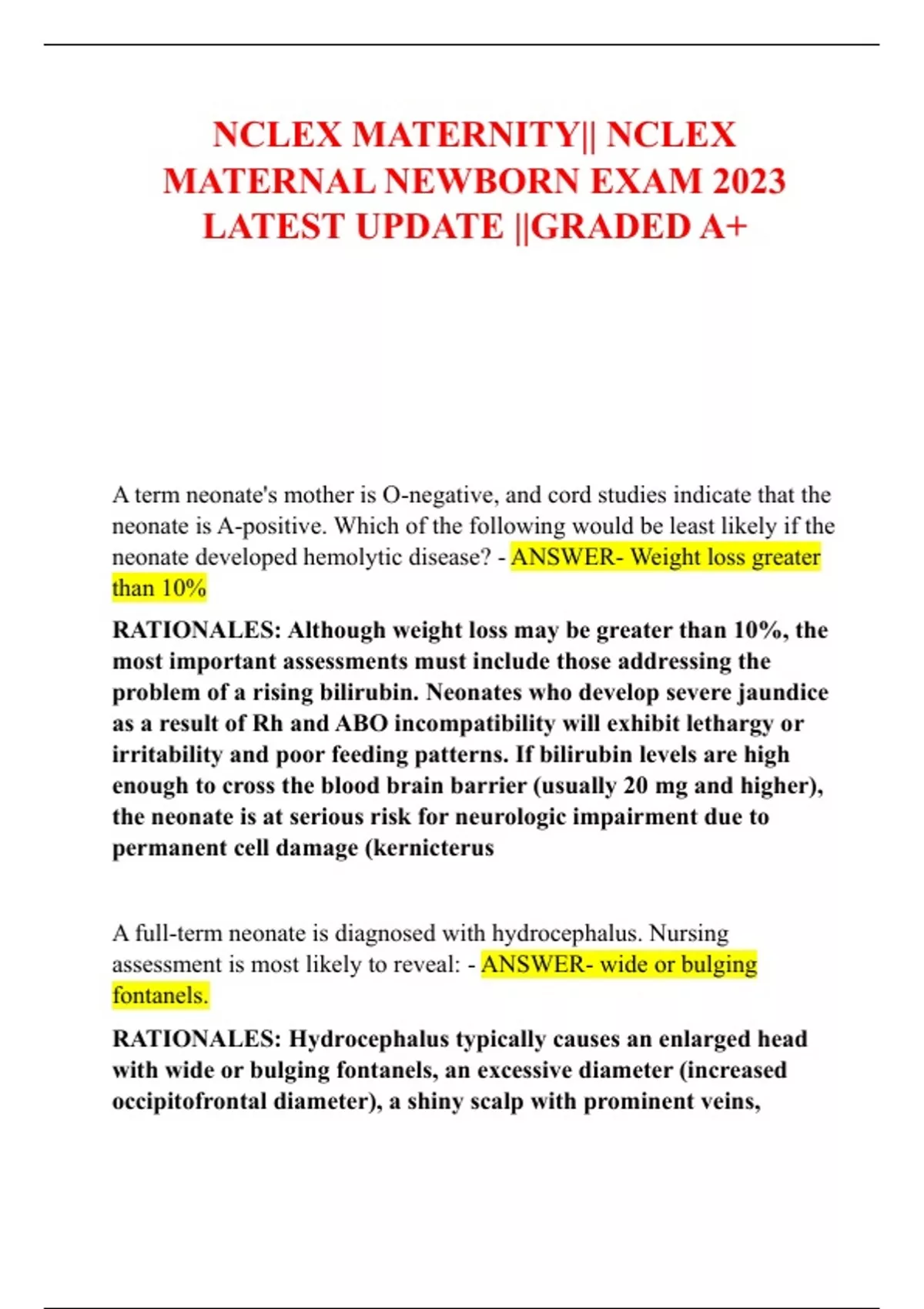 NCLEX MATERNITY|| NCLEX MATERNAL NEWBORN EXAM 2023 LATEST UPDATE ||GRADED A+NCLEX MATERNITY|| NCLEX MATERNAL NEWBORN EXAM 2023 LATEST UPDATE ||GRADED A+NCLEX MATERNITY|| NCLEX MATERNAL NEWBORN EXAM 2023 LATEST UPDATE ||GRADED A+NCLEX MATERNITY|| NCLEX MATERNAL NEWBORN EXAM 2023 LATEST UPDATE ||GRADED A+NCLEX MATERNITY|| NCLEX MATERNAL NEWBORN EXAM 2023 LATEST UPDATE ||GRADED A+