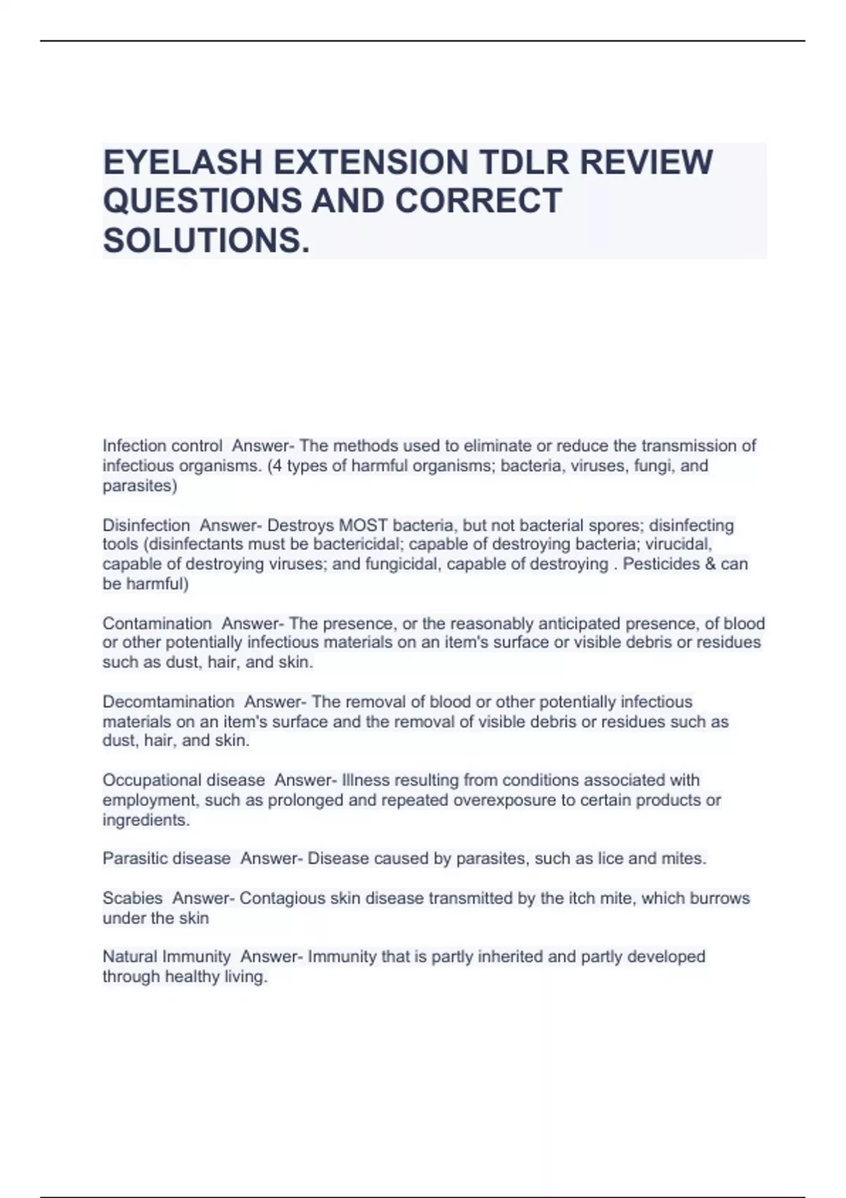 EYELASH EXTENSION TDLR REVIEW QUESTIONS AND CORRECT SOLUTIONS.