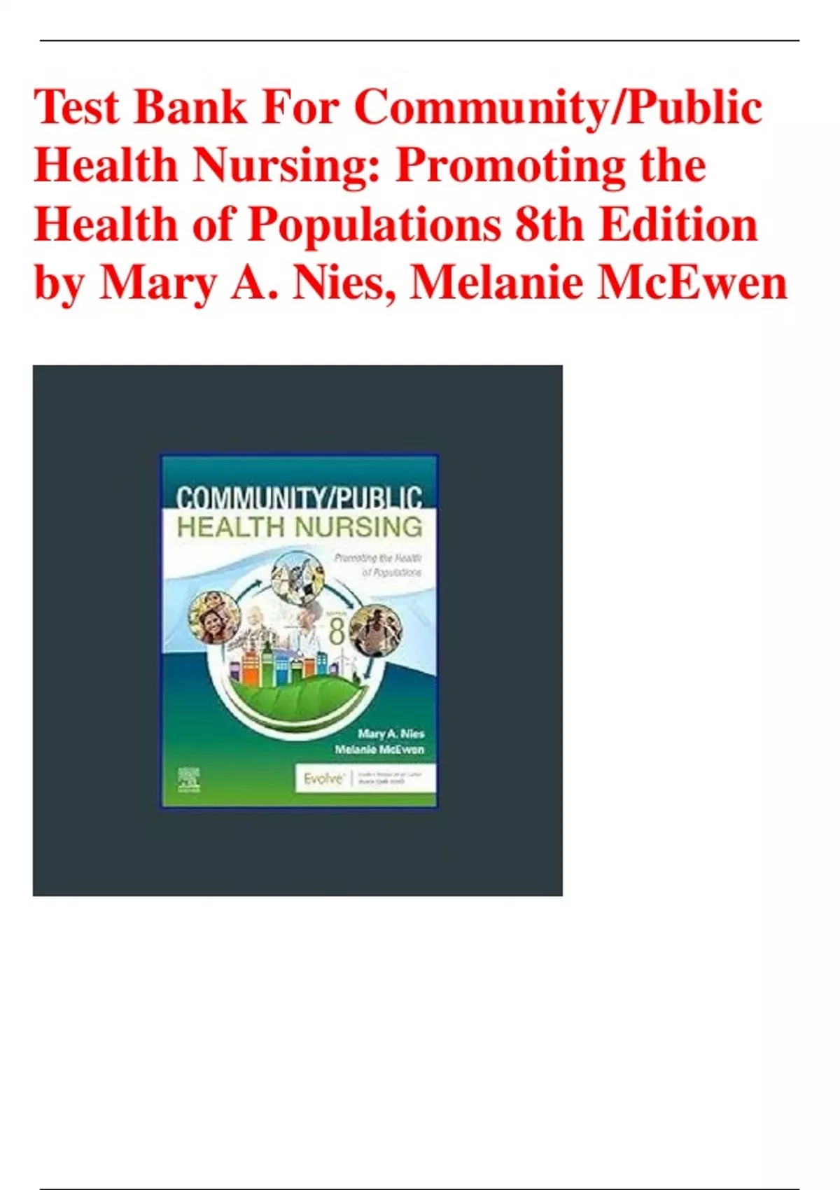 Test Bank For Community/Public Health Nursing: Promoting the Health of Populations 8th Edition by Mary A. Nies, Melanie McEwen