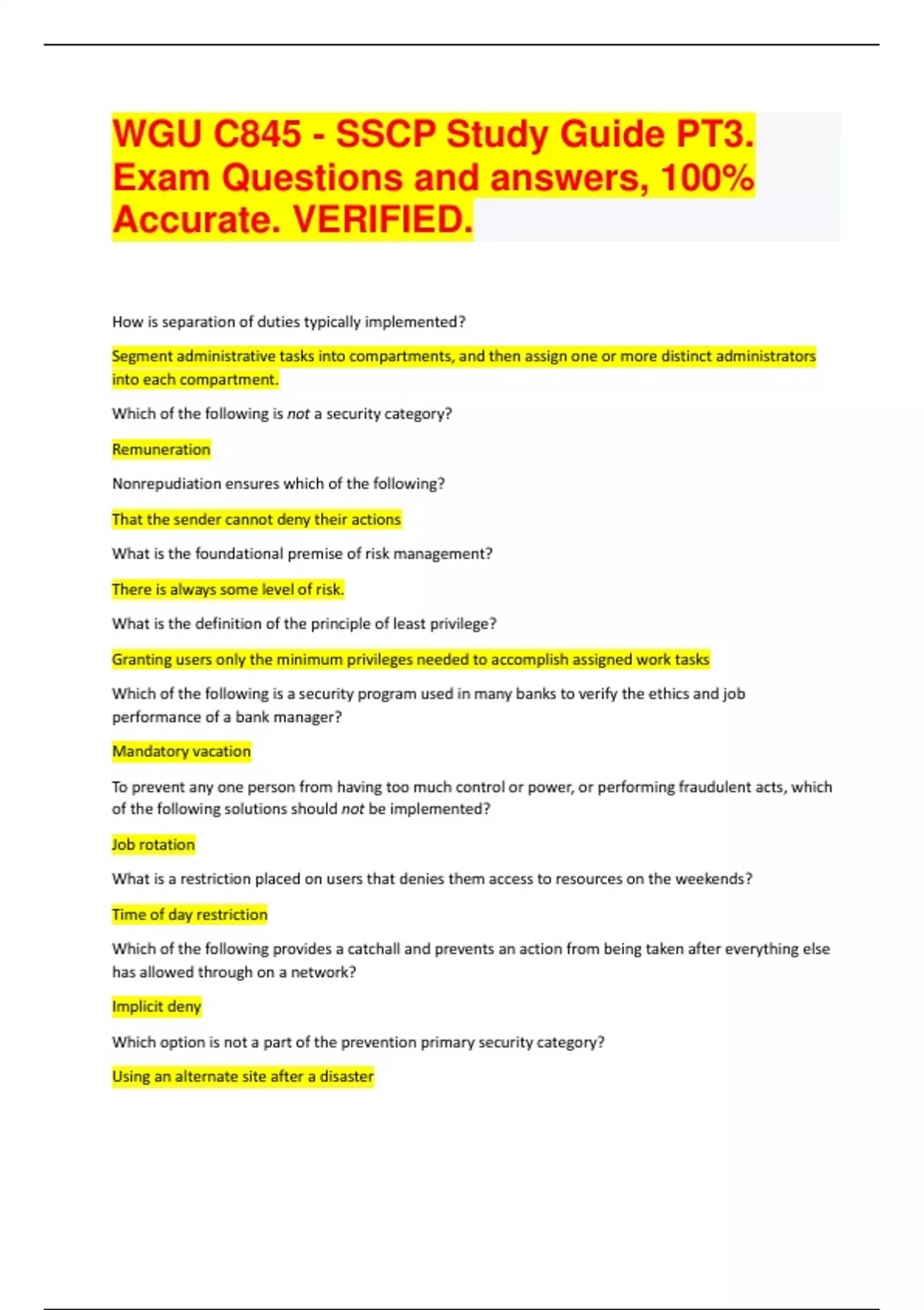 WGU C845 - SSCP Study Guide PT3. Exam Questions and answers, 100% Accurate. VERIFIED