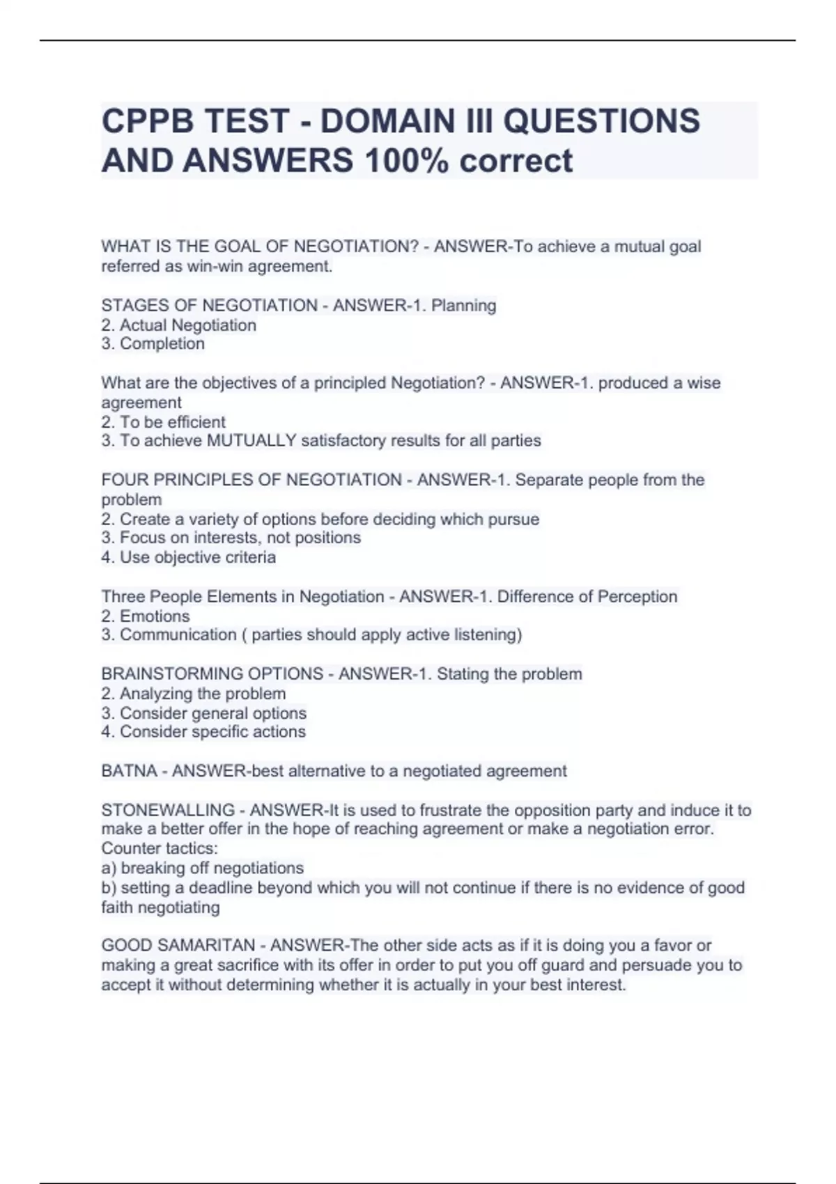 CPPB TEST - DOMAIN III QUESTIONS AND ANSWERS 100% correct