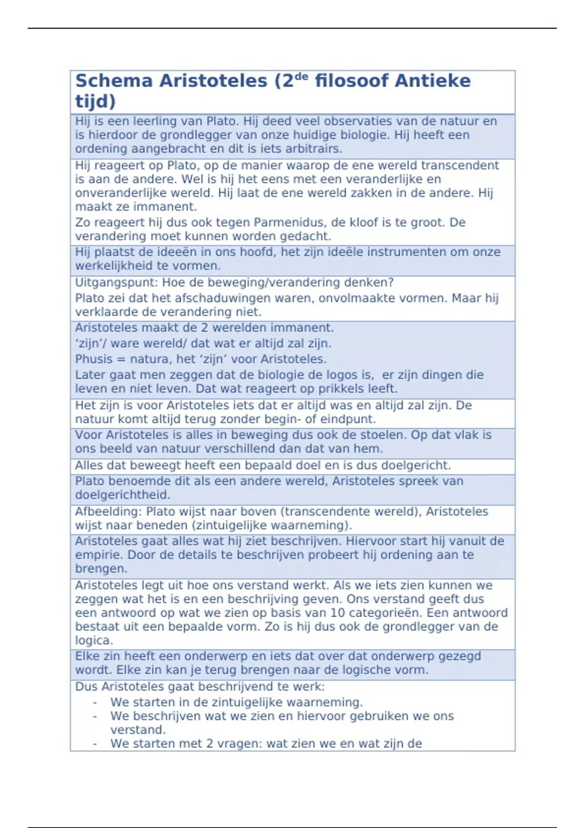 Schema Aristoteles (2de filosoof Antieke