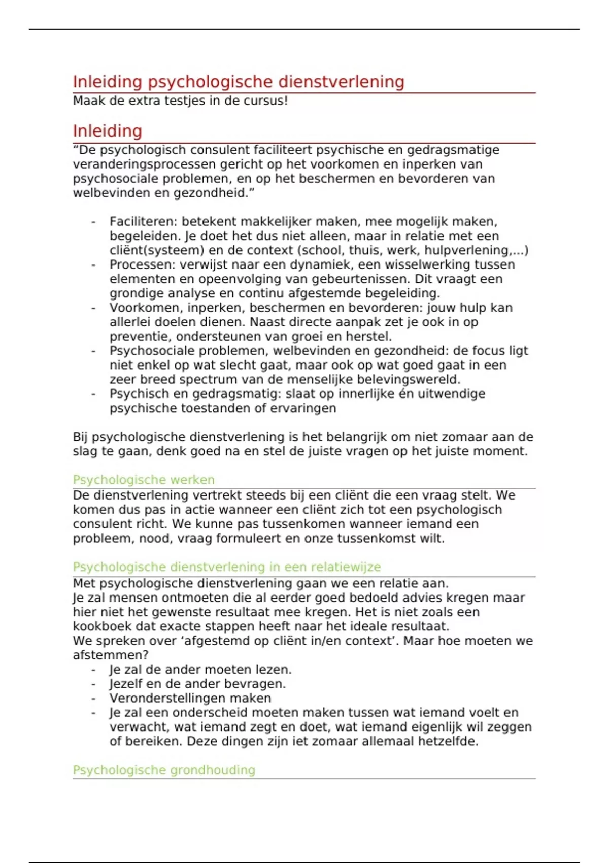 komen dus pas in actie wanneer een cliënt zich tot een psychologisch