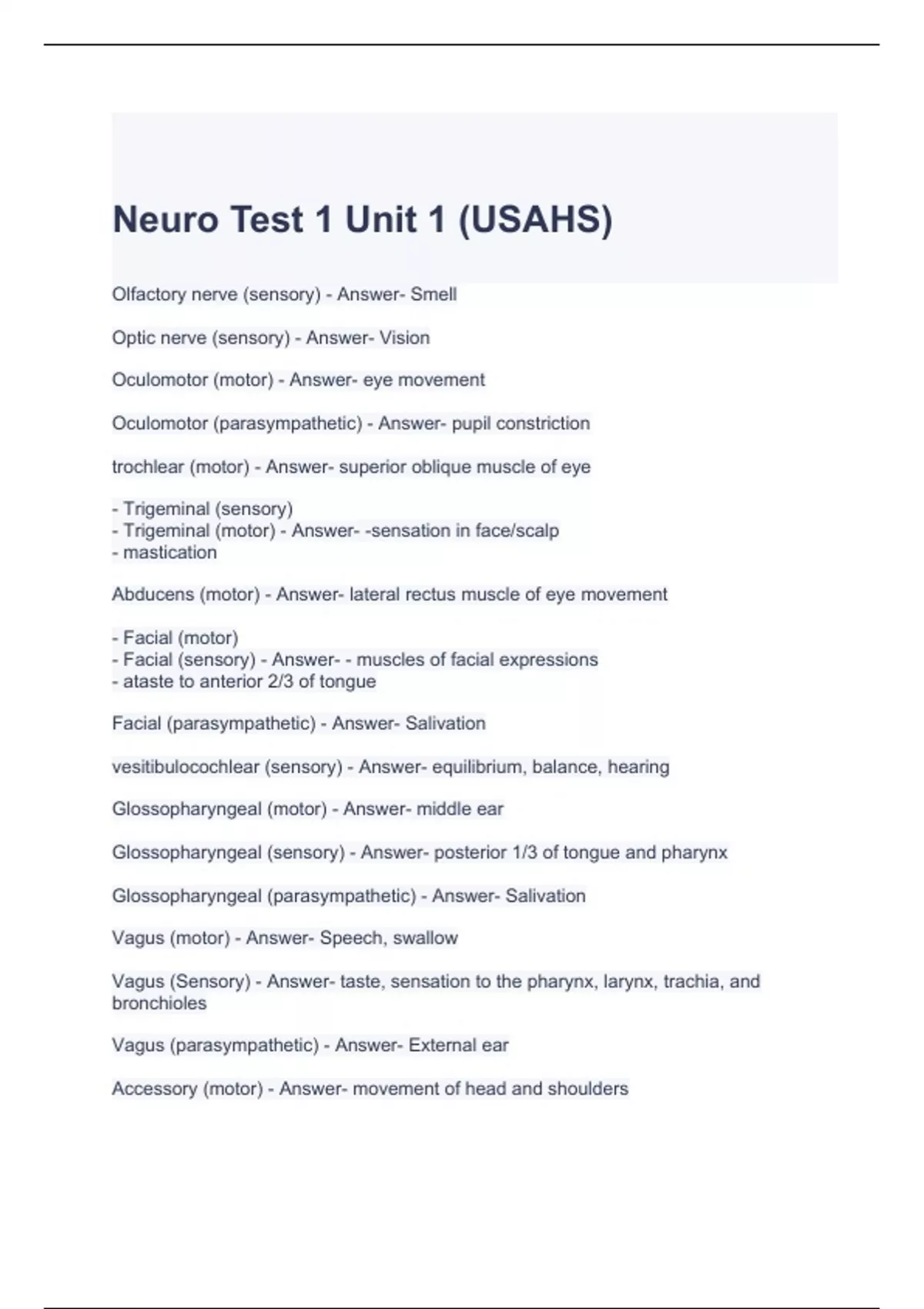Neuro Test 1 Unit 1 (USAHS) Questions with correct Answers