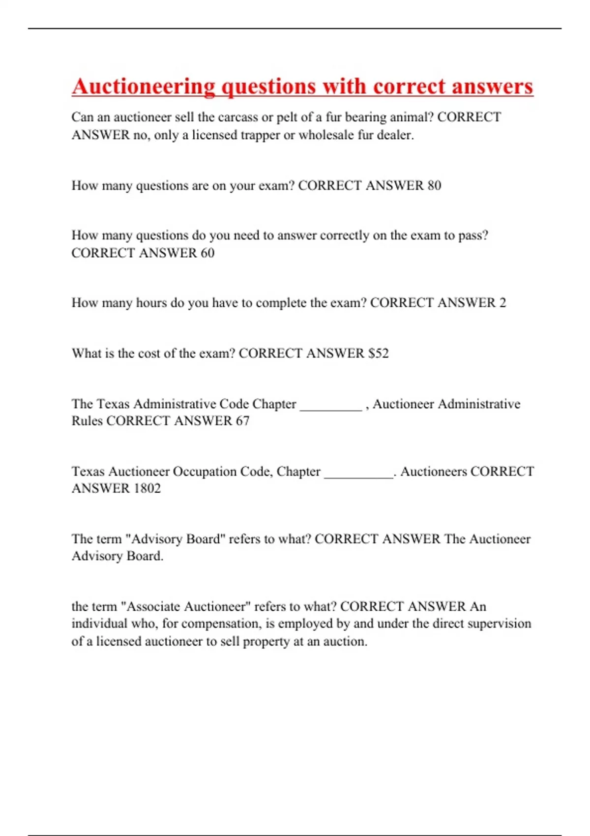 Auctioneering questions with correct answers