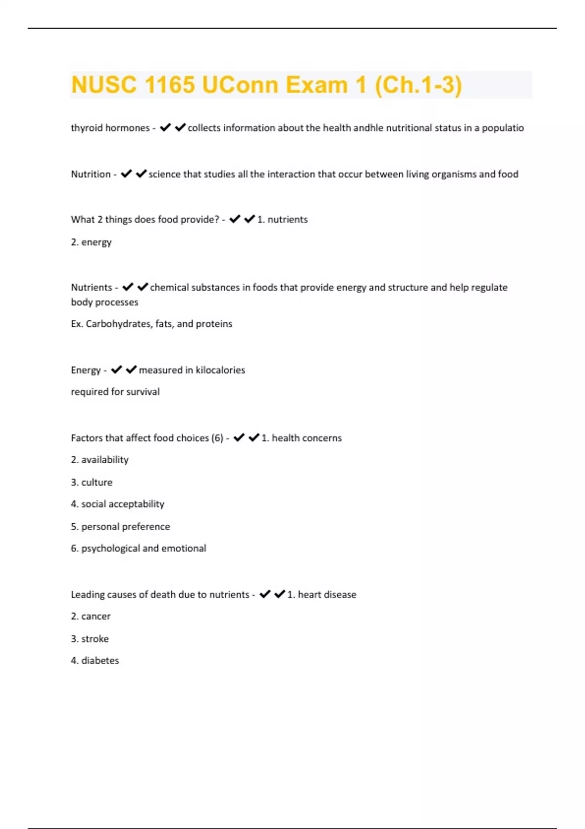 NUSC 1165 UConn Exam 1 (Ch.1-3) Questions + Answers Rated 100% Correct!!