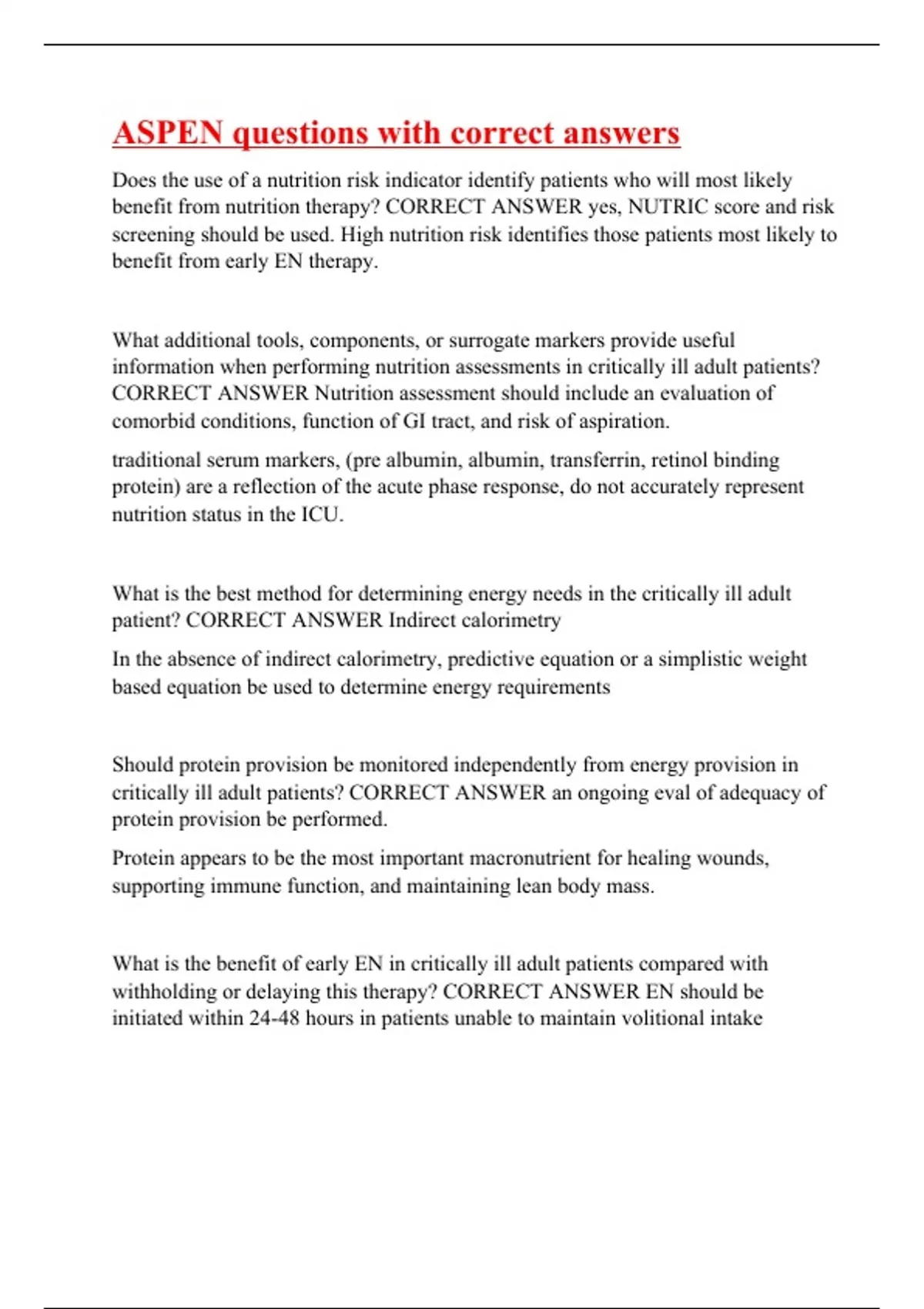 ASPEN questions with correct answer WITH COMPLETE SOLUTIONS