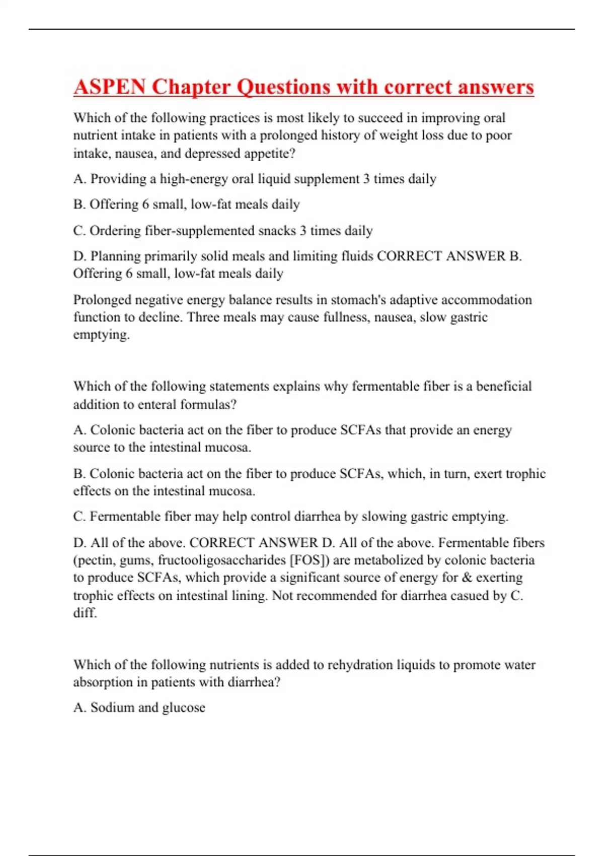 ASPEN Chapter Questions with correct answers. with complete solutions