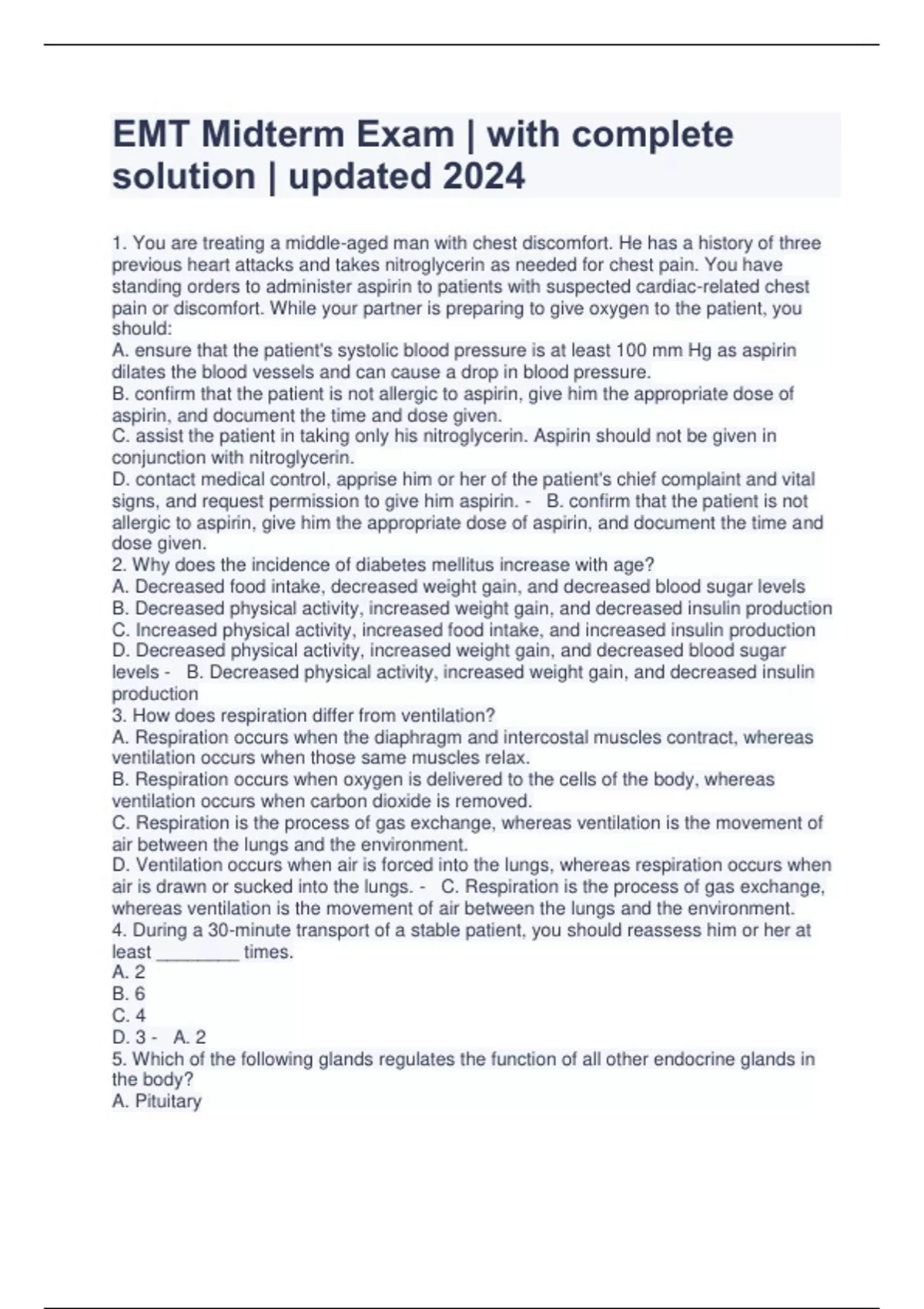 EMT Midterm Exam | with complete solution | updated 2024